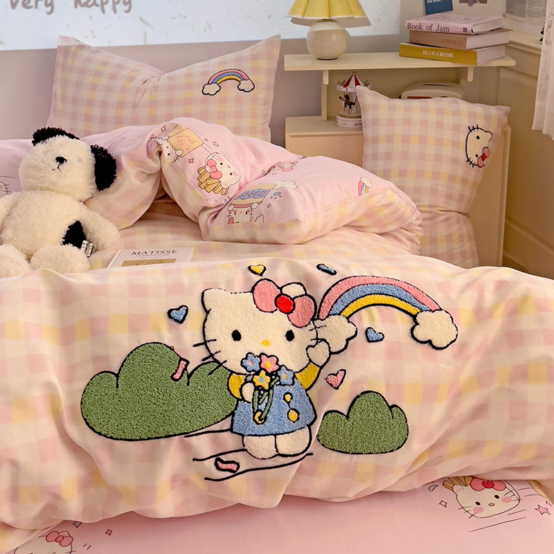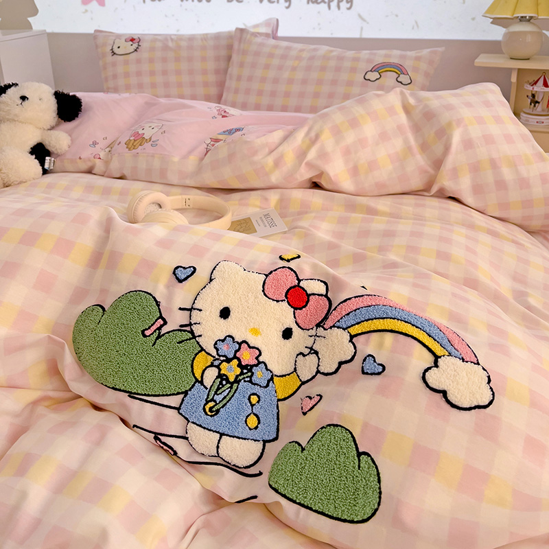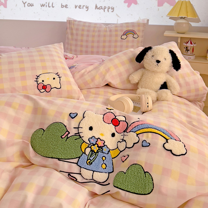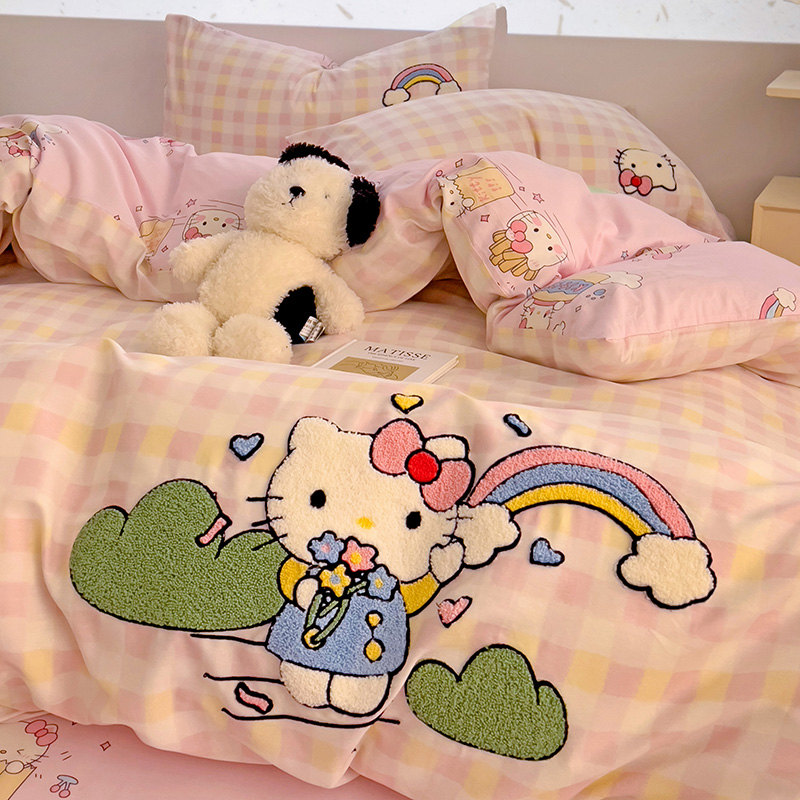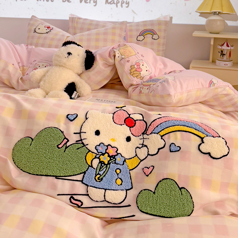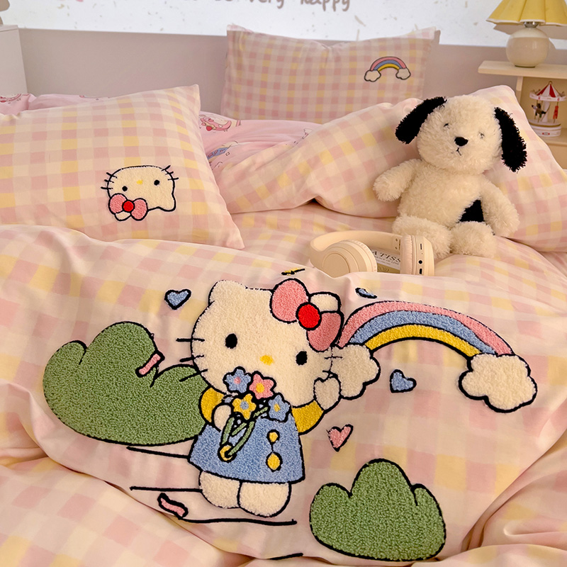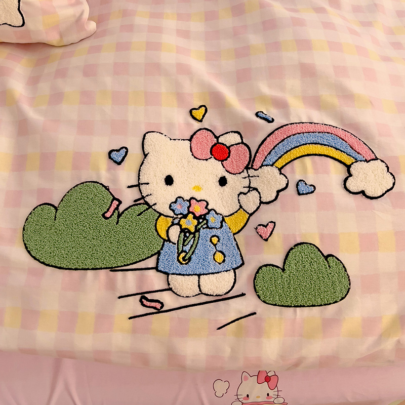 云锦家居 2025新款13370纯棉毛巾绣呆萌系列四件套 彩虹猫