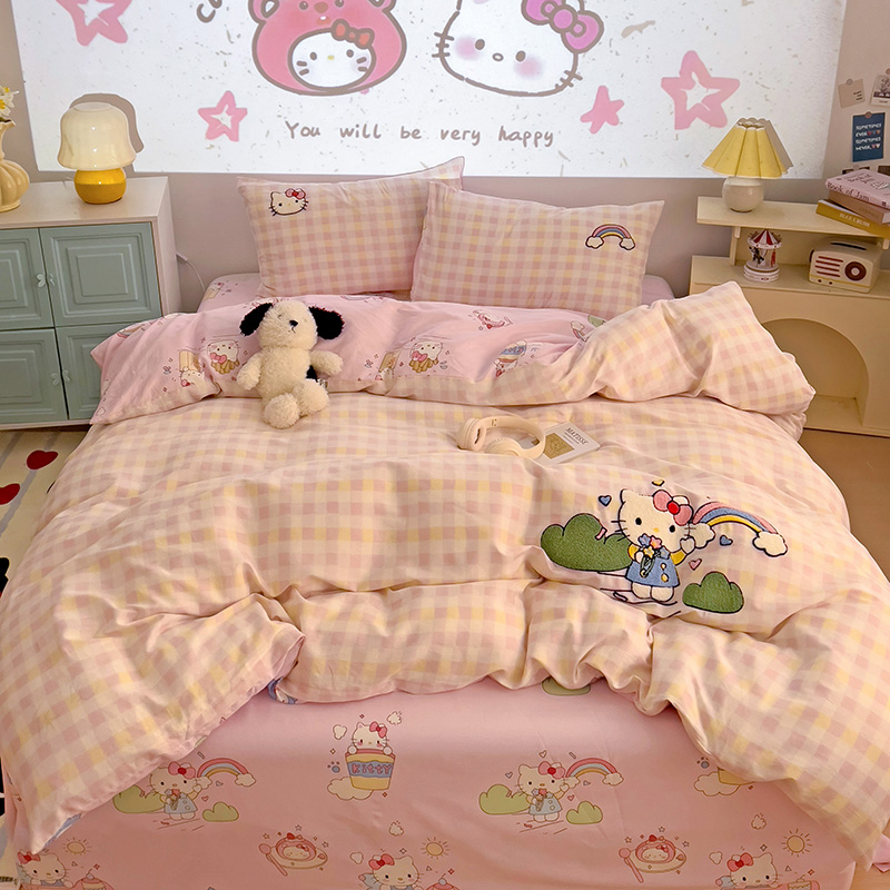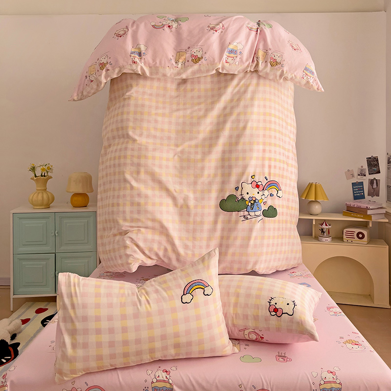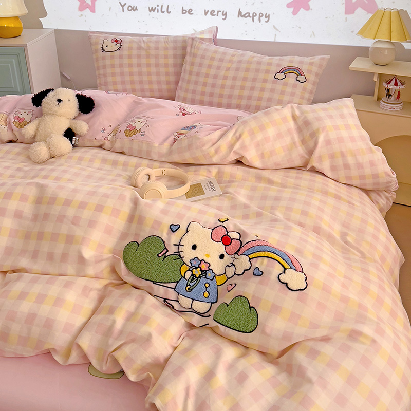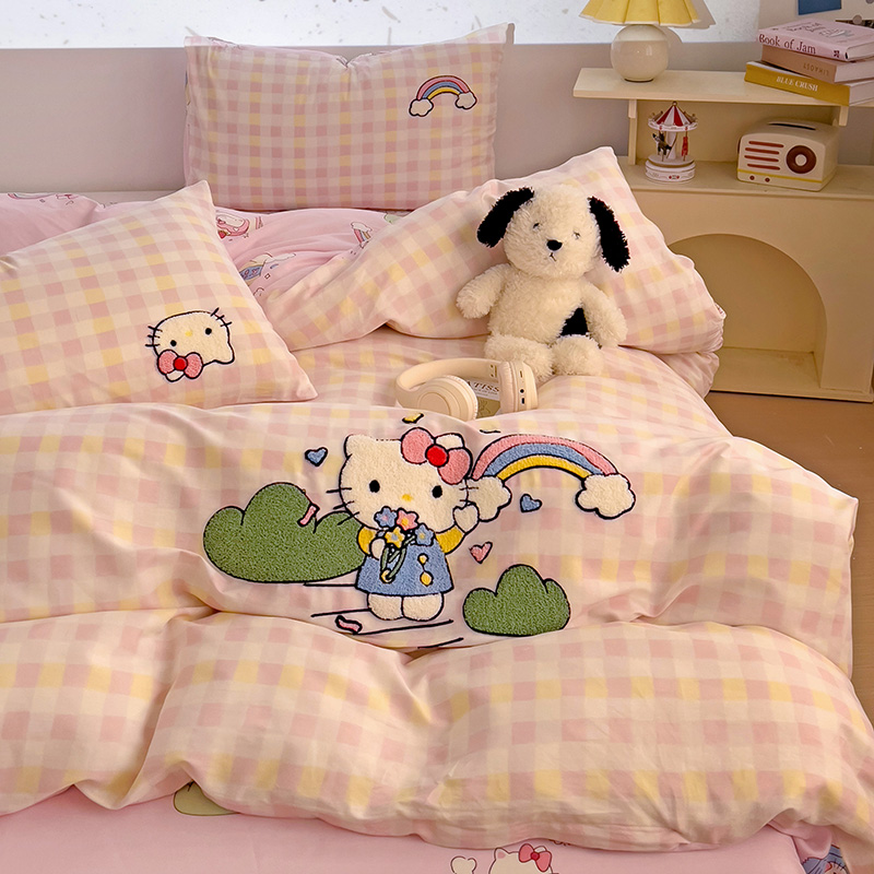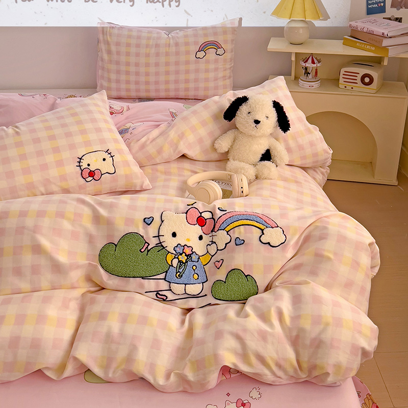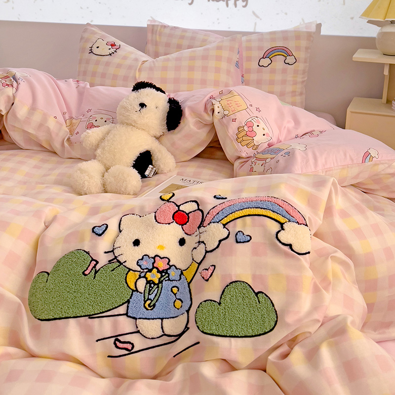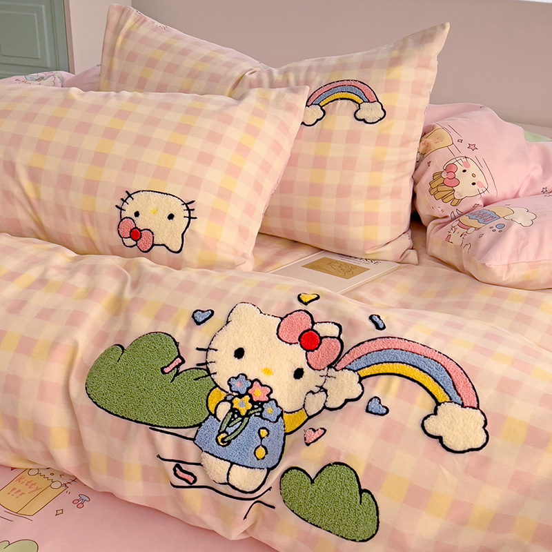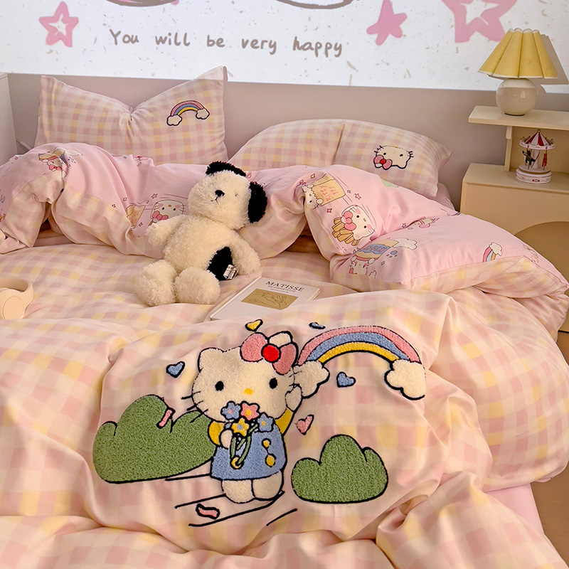 云锦家居 2025新款13370纯棉毛巾绣呆萌系列四件套 彩虹猫