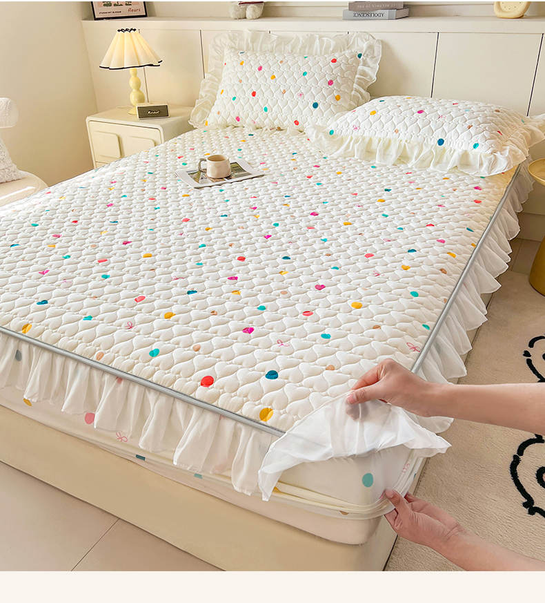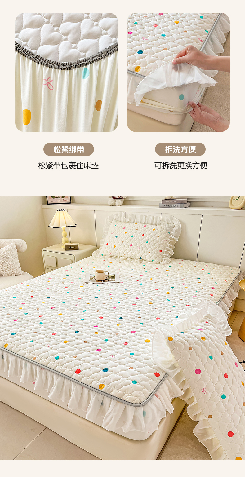 商品名称:(总)眠势力 2025新款韩版花边床笠款四件套雪纺公主风ins夹棉四季通用席梦思保护套