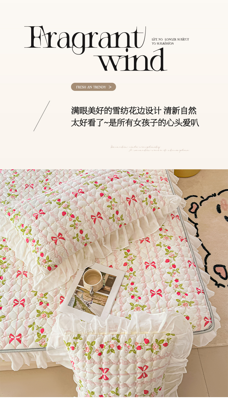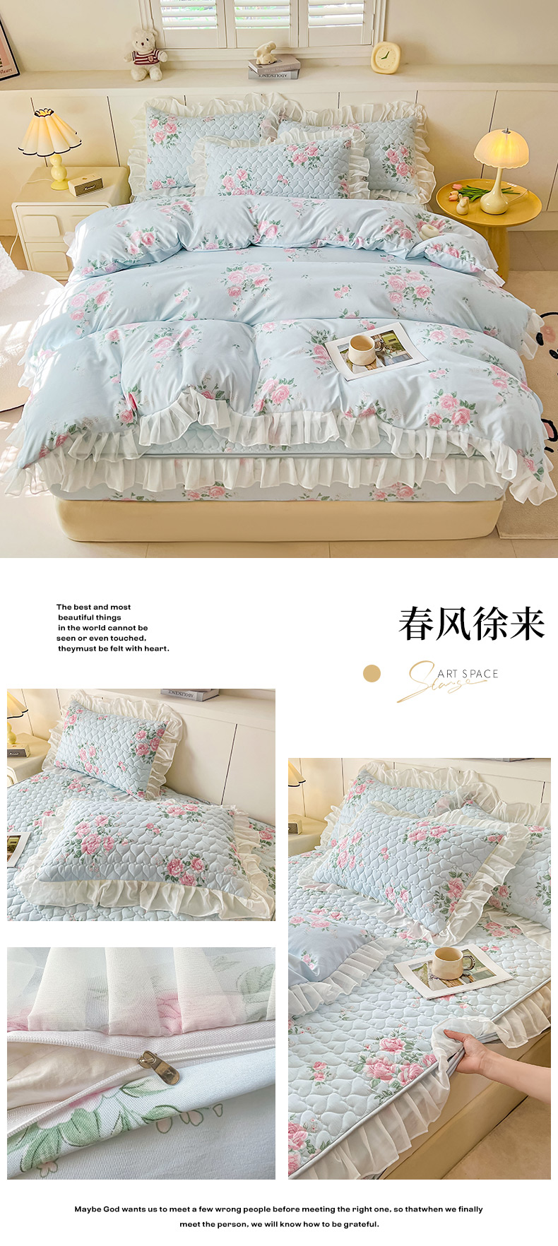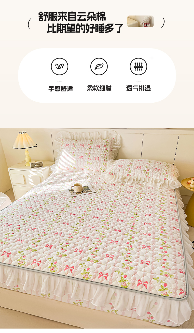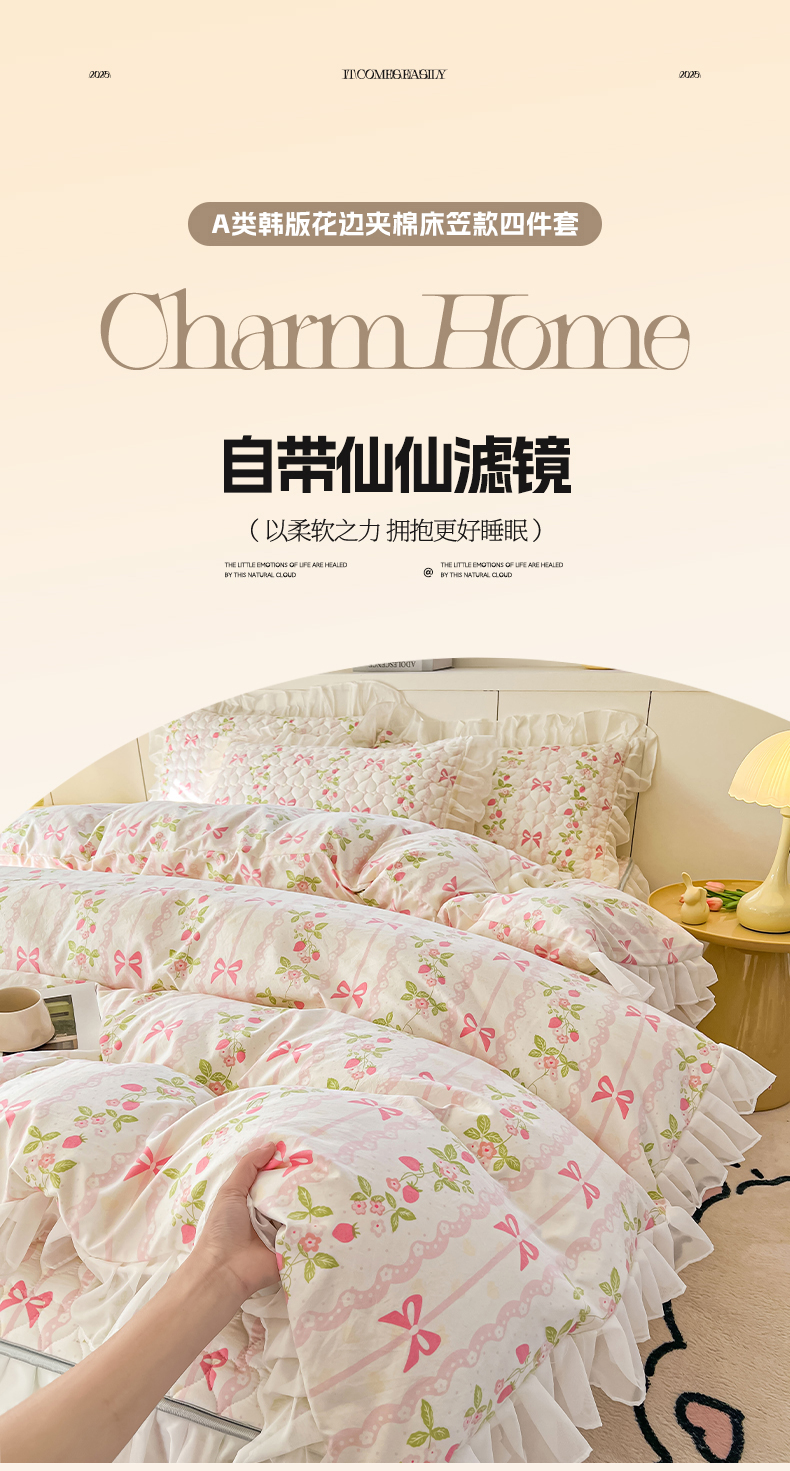 当前位置: 91家纺网 > 商品网购 > 床品套件 > 四件套 > 其它四件套 > 眠势力 2025新款韩版花边床笠款四件套雪纺公主风ins夹棉四季通用席梦思保护套 微风