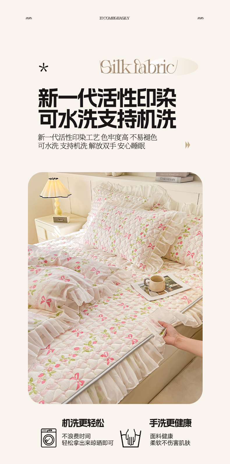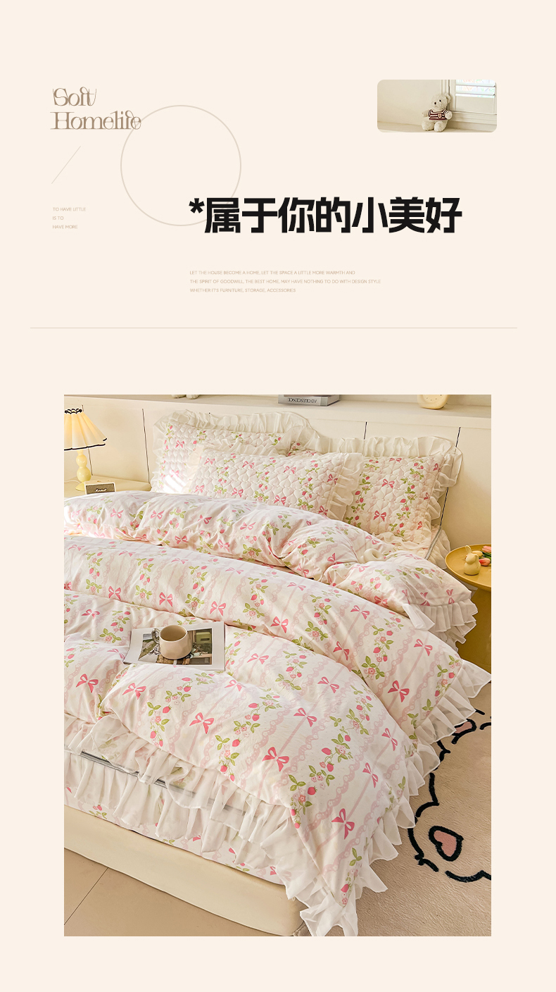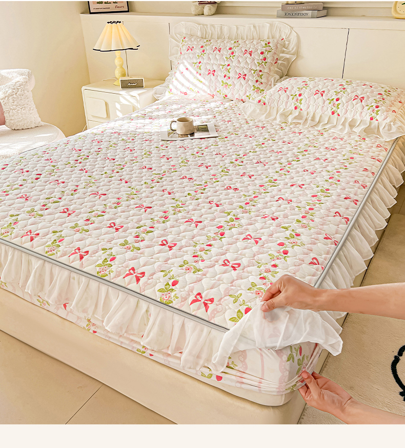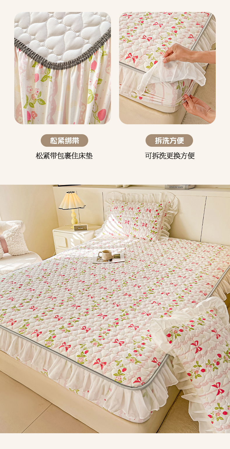 当前位置: 91家纺网 > 商品网购 > 床品套件 > 四件套 > 其它四件套 > 眠势力 2025新款韩版花边床笠款四件套雪纺公主风ins夹棉四季通用席梦思保护套 微风