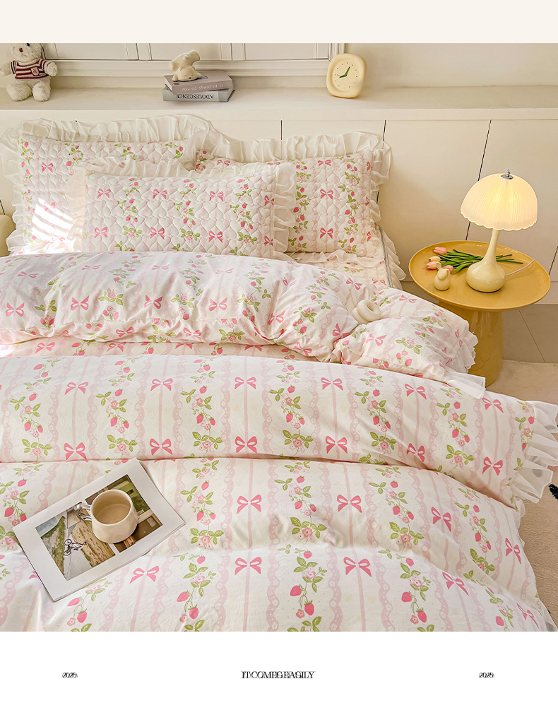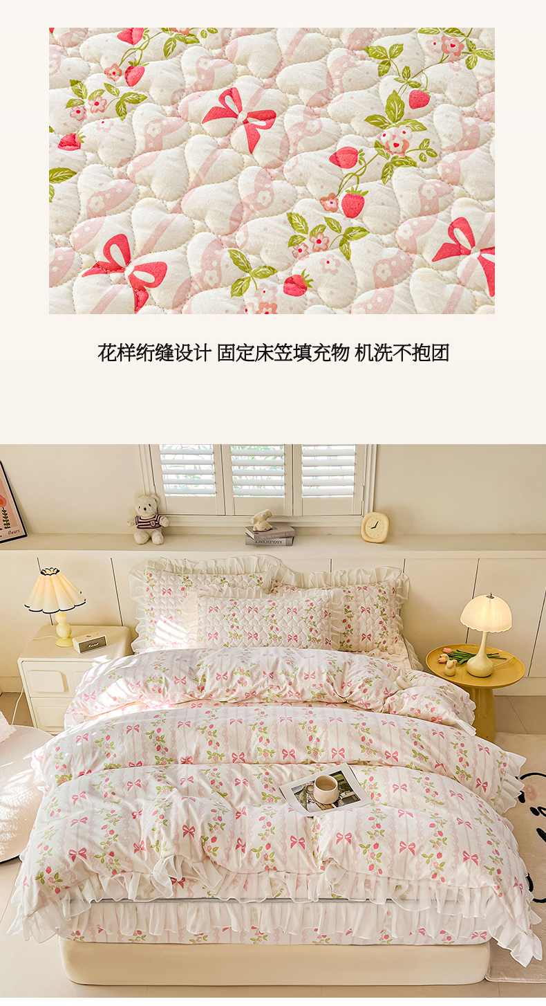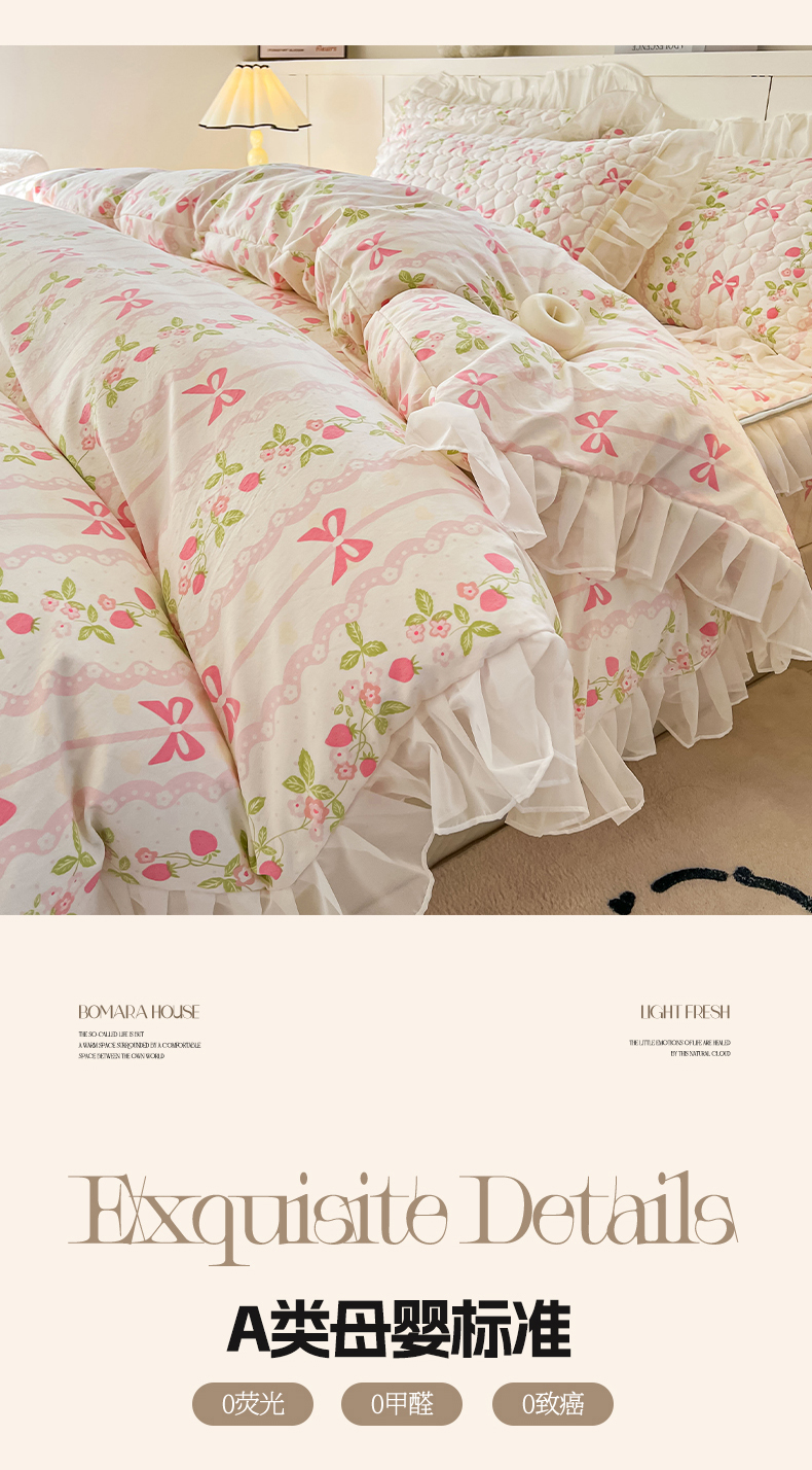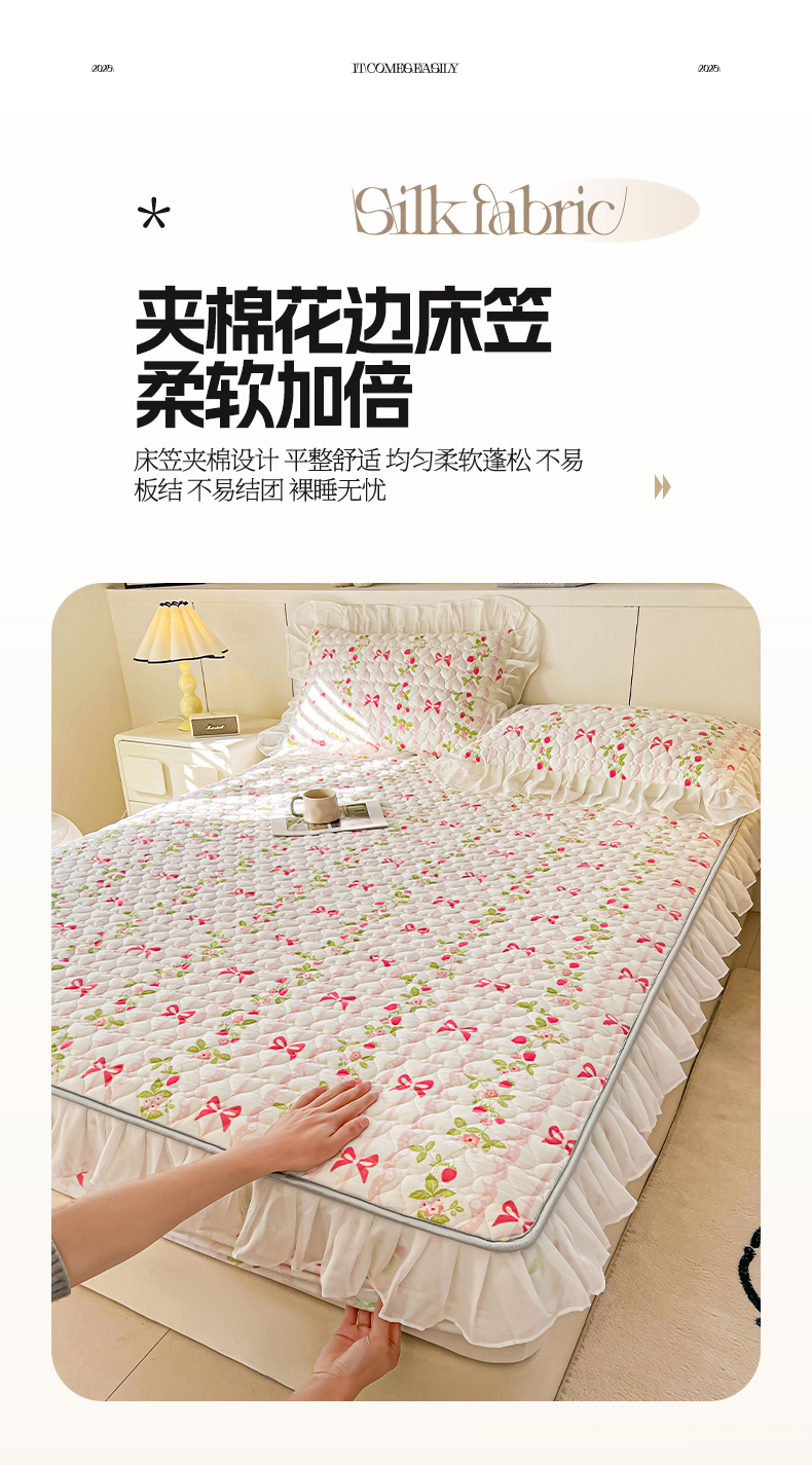 当前位置: 91家纺网 > 商品网购 > 床品套件 > 四件套 > 其它四件套 > 眠势力 2025新款韩版花边床笠款四件套雪纺公主风ins夹棉四季通用席梦思保护套 微风