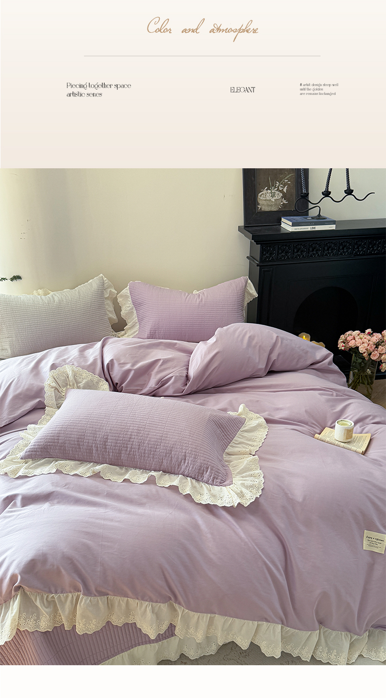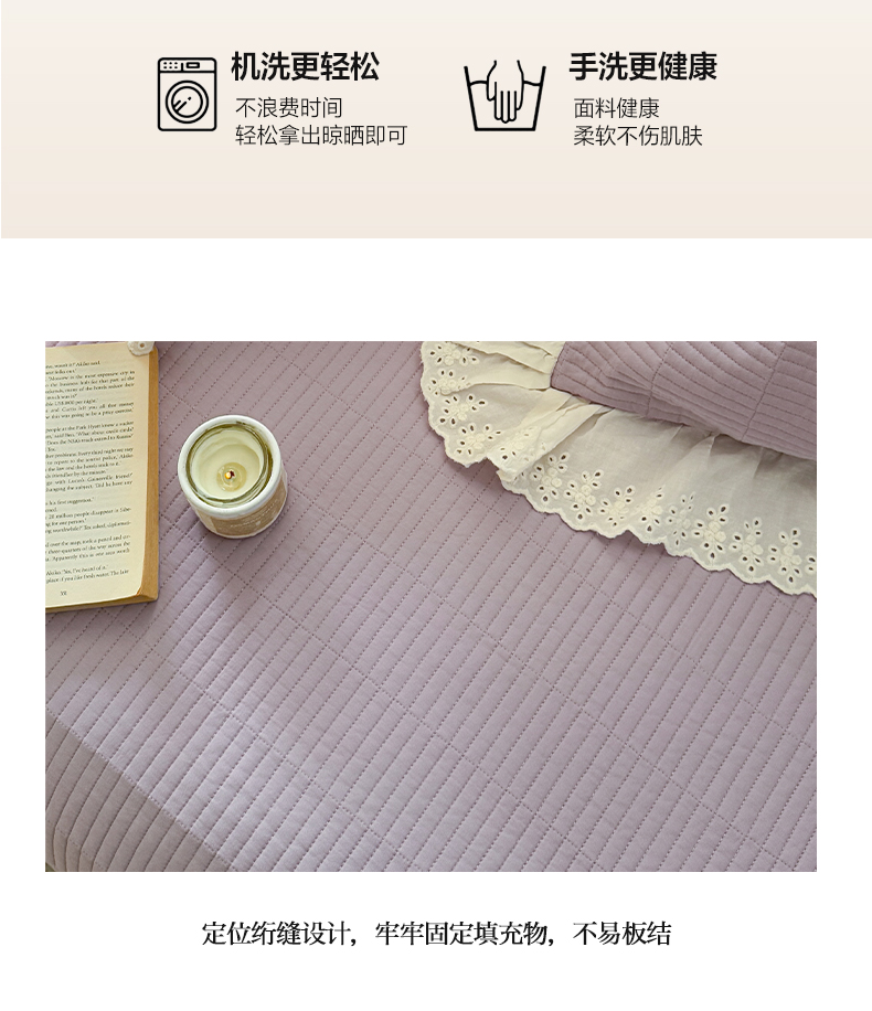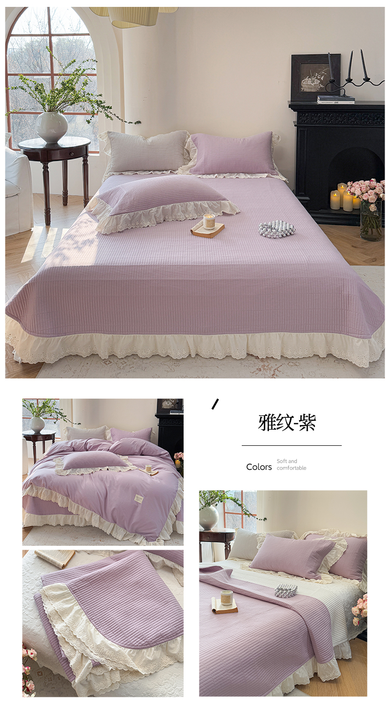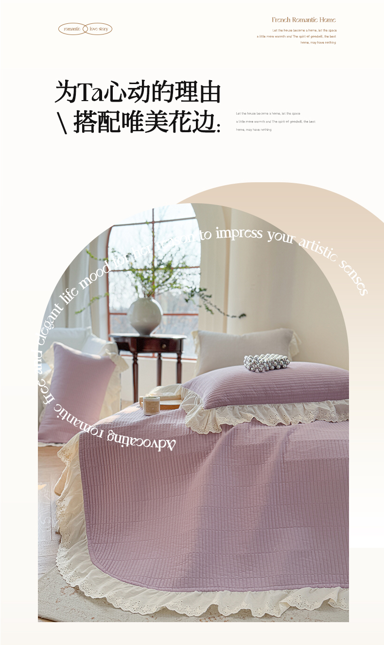 当前位置: 91家纺网 > 商品网购 > 床品套件 > 三件套 > 琳可 2025新款雅纹系列纯色全棉法式花边床盖高温水洗加密绗缝可机洗 雅纹-紫