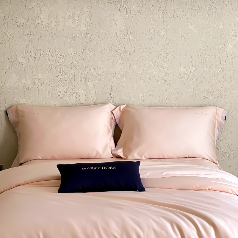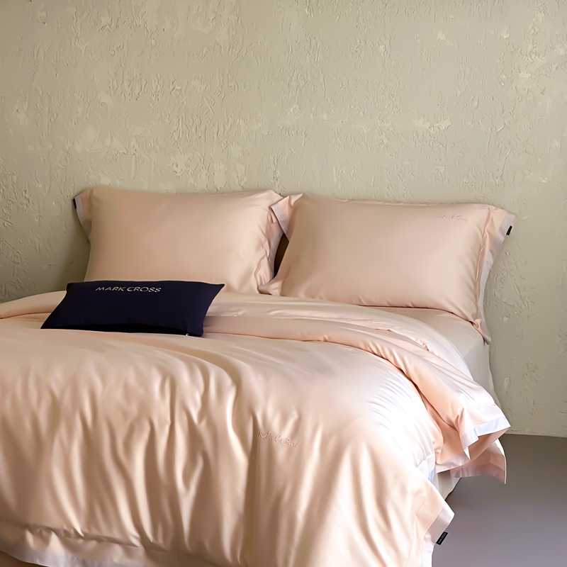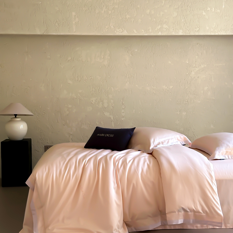 佳汐蓝家纺 2025新款灵动撞色飞边100支超细旦天丝棉四件套 浅藕粉