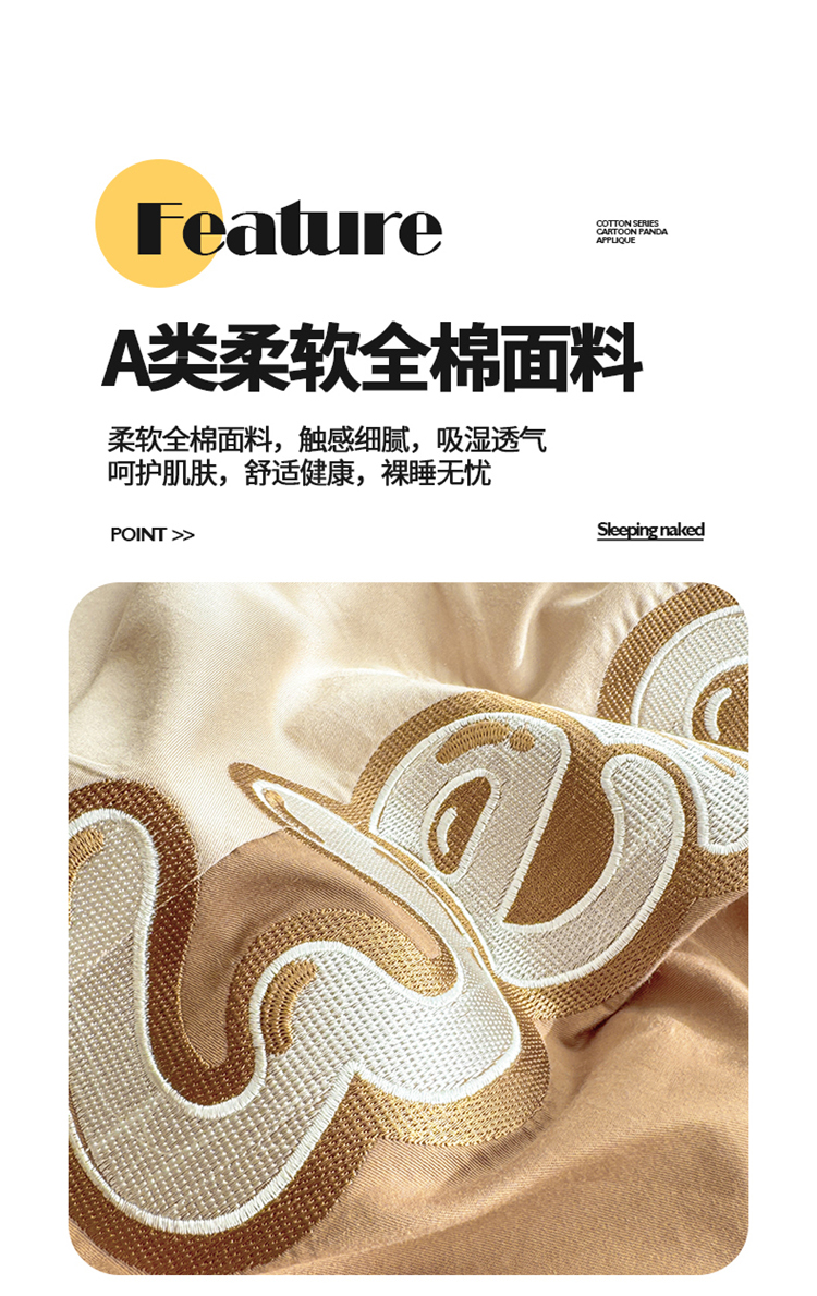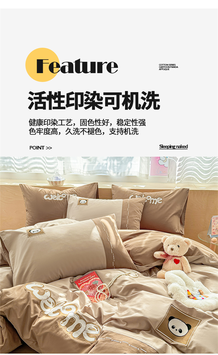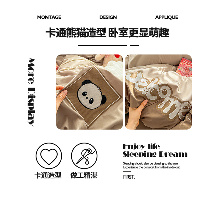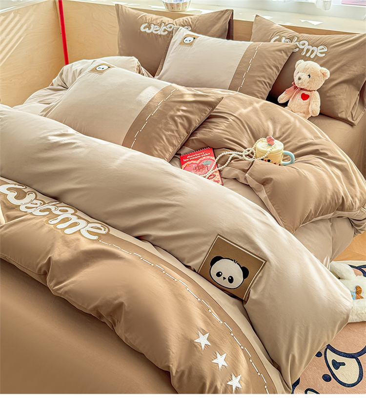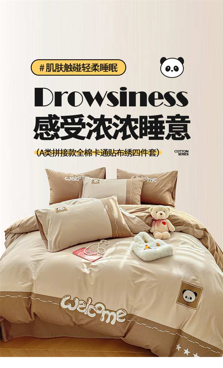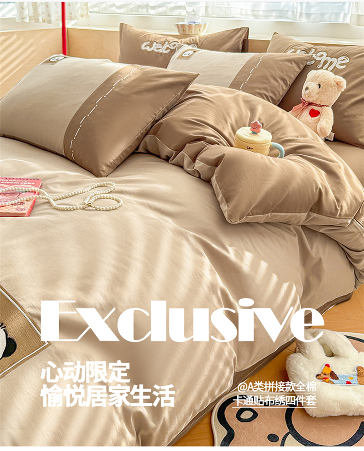 商品名称:懒猫家纺 2025新款【懒宝威尔】全棉拼接刺绣四件套 懒宝威尔-棕
