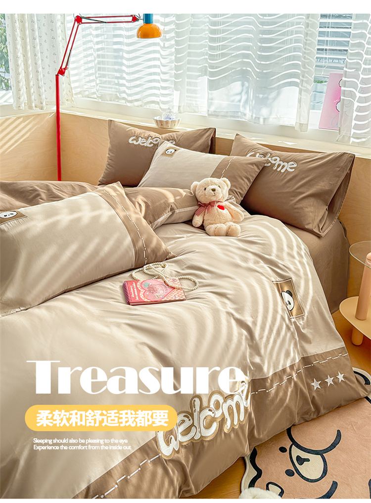 懒猫家纺 2025新款【懒宝威尔】全棉拼接刺绣四件套 懒宝威尔-棕