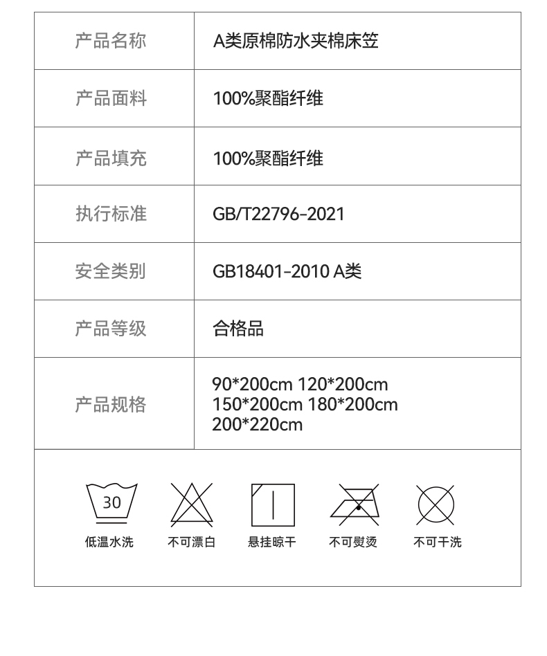 商品名称:(总)兄弟坊 防水原棉夹棉床垫 防水床笠 床护垫 床垫