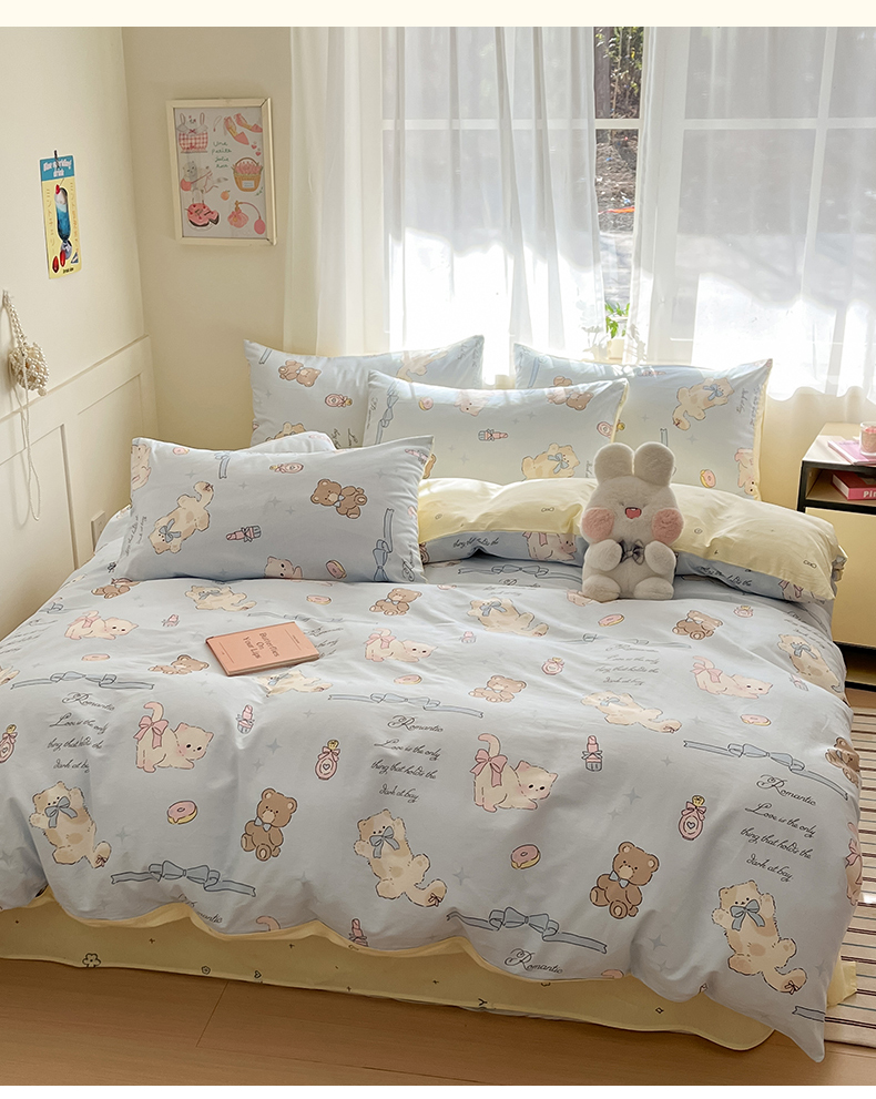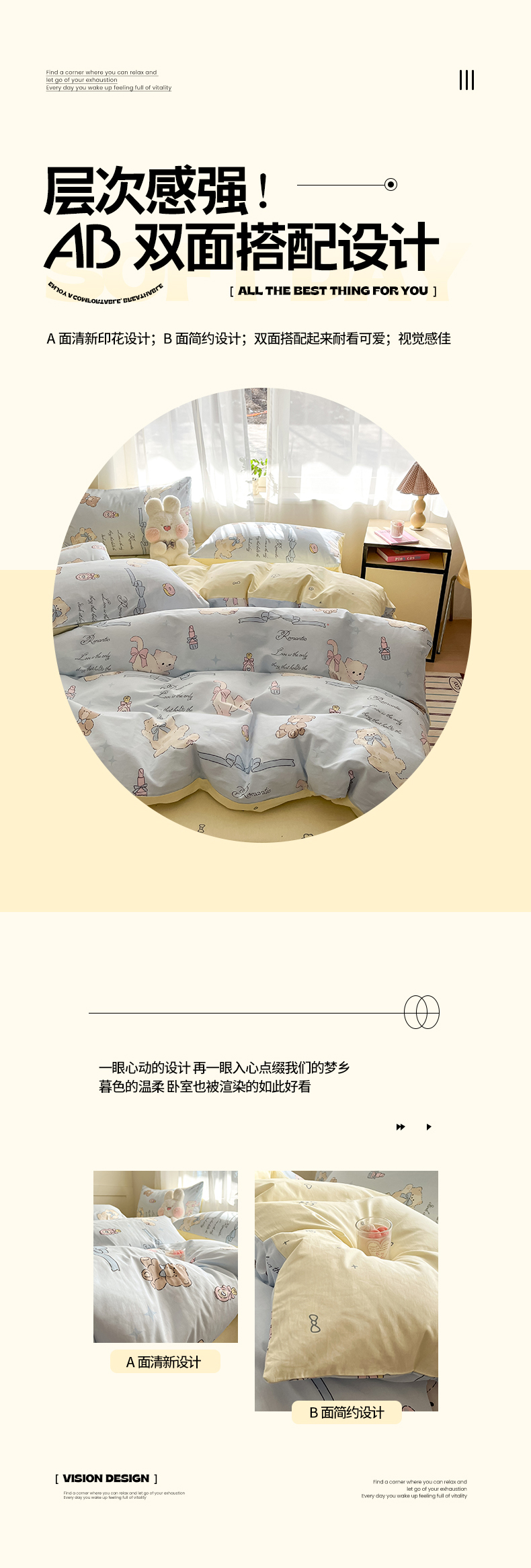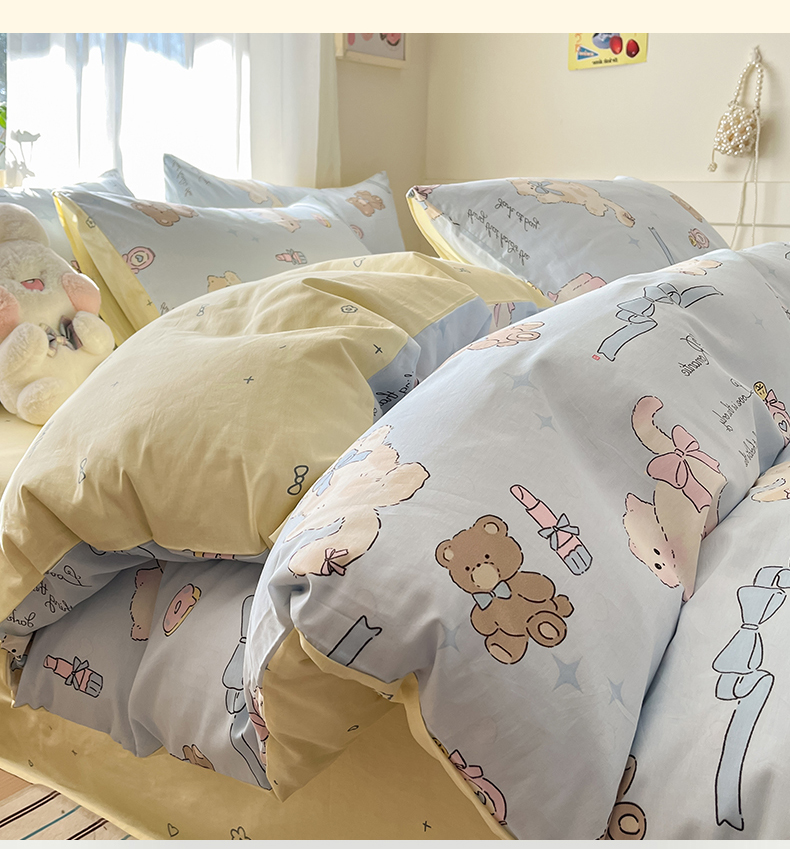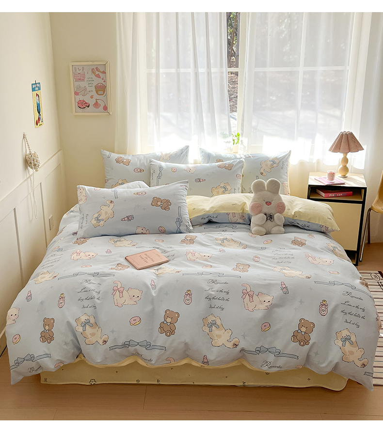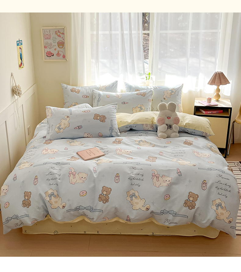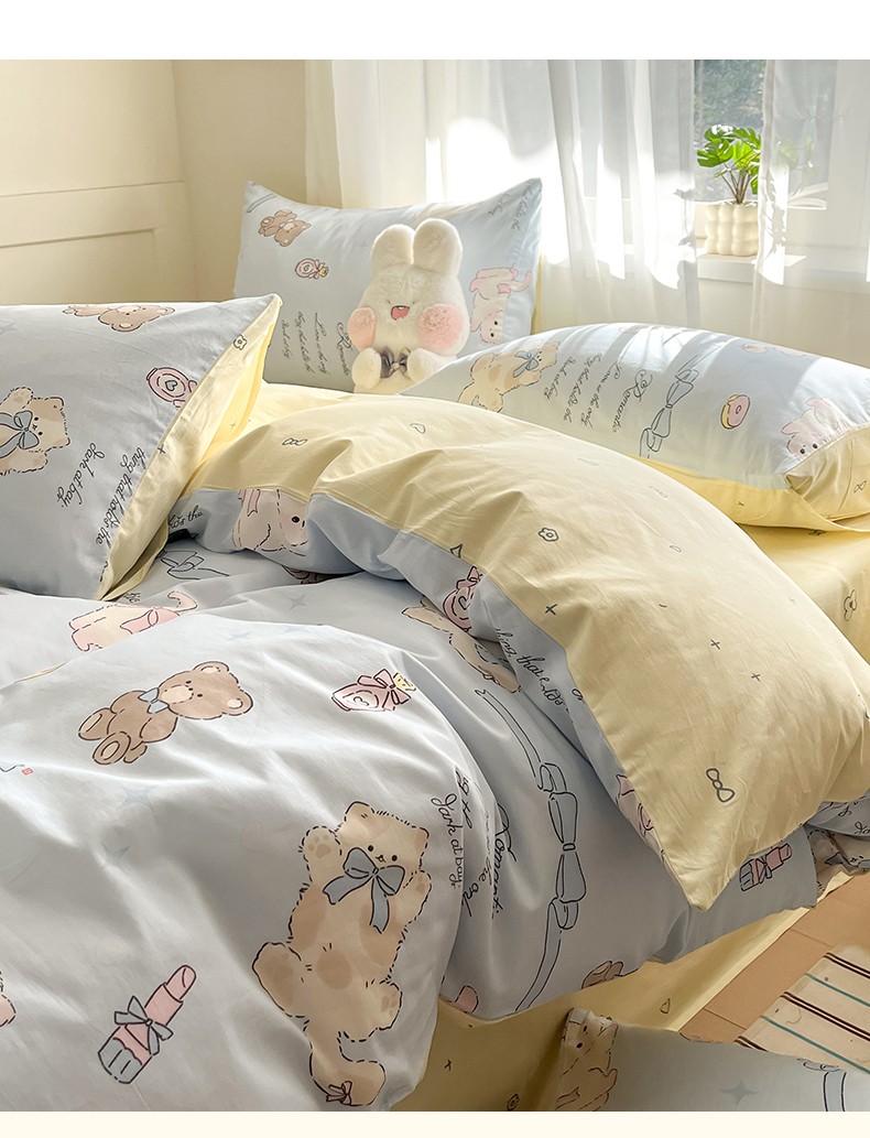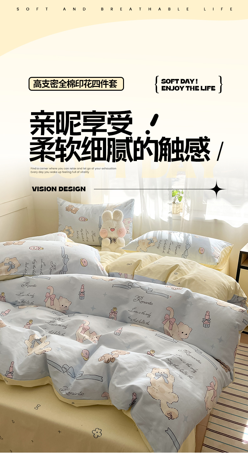 (总)吉象家纺 2025新款12868全棉印花单被套,蓝色泡芙狗,蘑菇小兔,奶油甜心熊,碎花狗狗,碎花小兔,爪爪会客厅