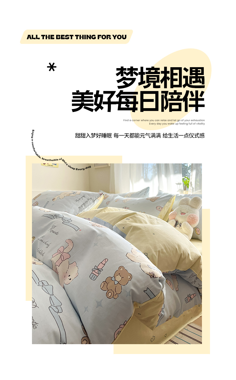 (总)吉象家纺 2026新款高支密全棉印花四件套,睡梦熊,布偶假期,彩虹木马,春游手记,点点小熊,度假恐龙,快乐小马,妙趣乐园,奶酪小可爱,秋日乐园,三小只,甜梦小精灵,童话花町,童年小事,温柔花朵熊,小小宇航员,星际仔仔,星星漫游记
