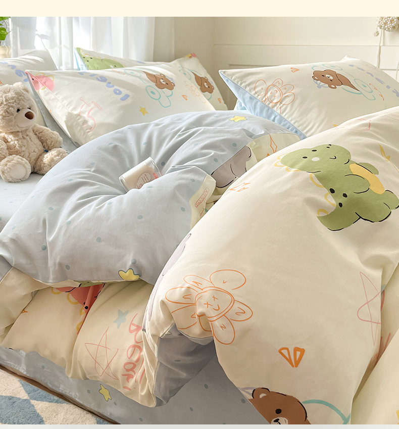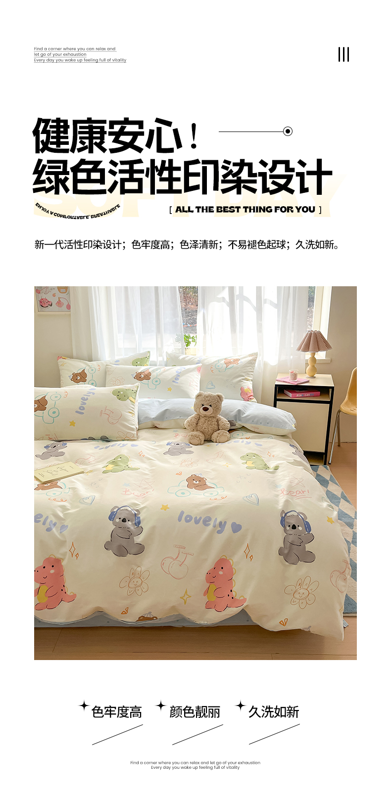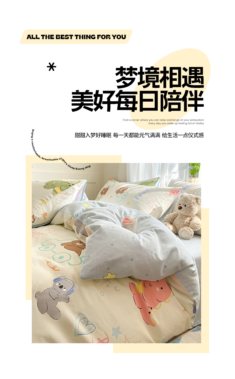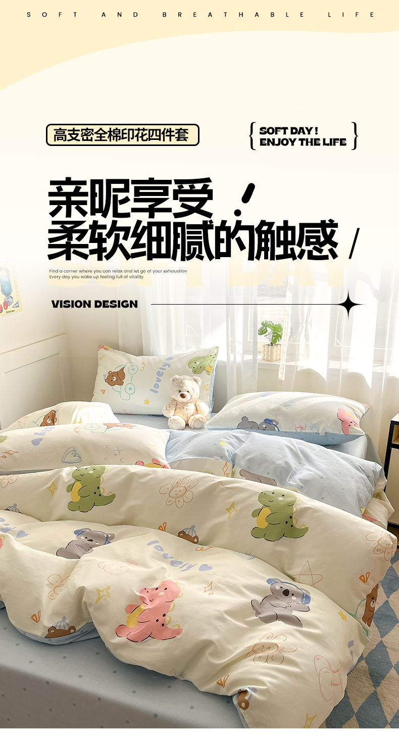 (总)吉象家纺 2026新款高支密全棉印花四件套,睡梦熊,布偶假期,彩虹木马,春游手记,点点小熊,度假恐龙,快乐小马,妙趣乐园,奶酪小可爱,秋日乐园,三小只,甜梦小精灵,童话花町,童年小事,温柔花朵熊,小小宇航员,星际仔仔,星星漫游记