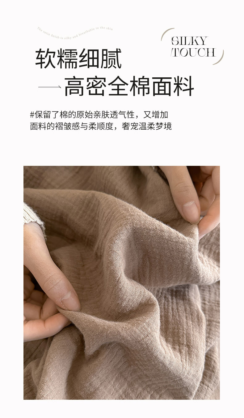 商品名称:三朵 2025新款全棉四层绉绉纱流苏多功能毯 美拉德咖