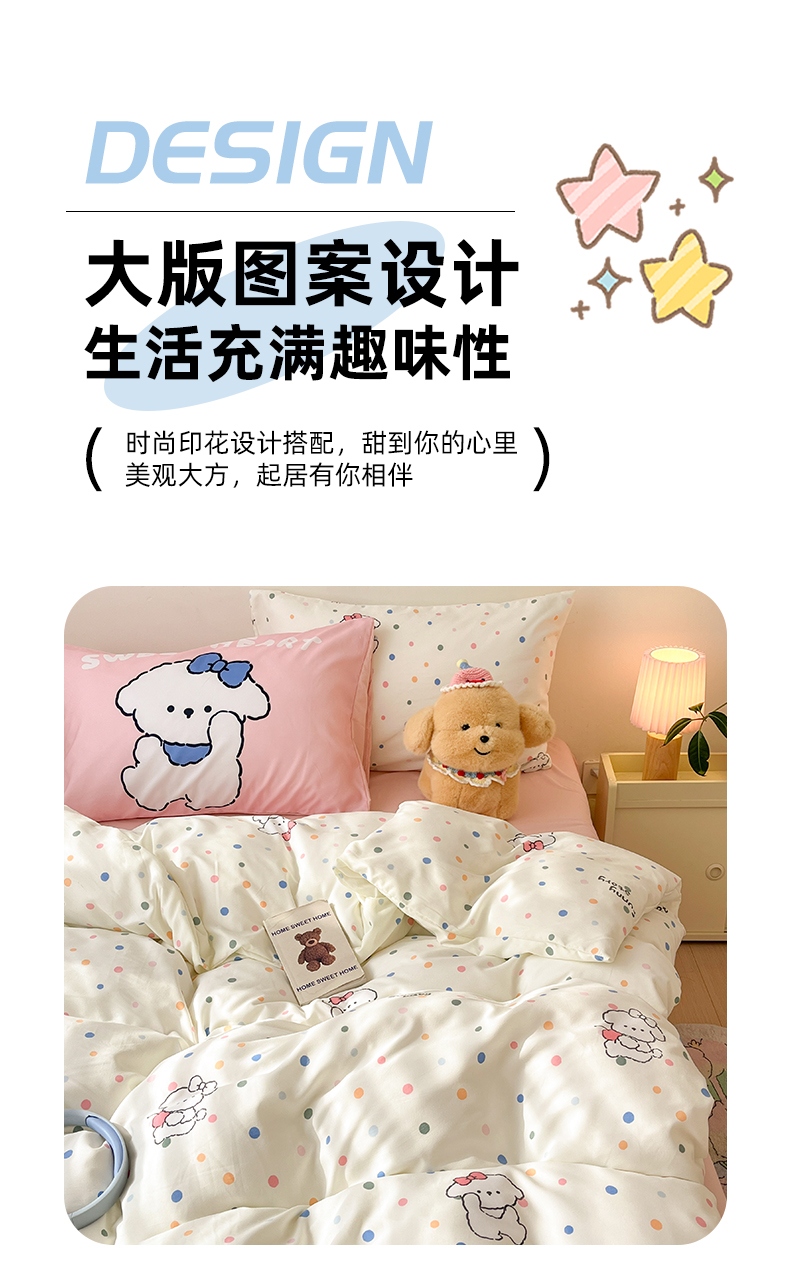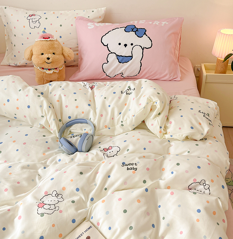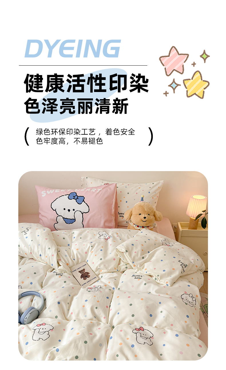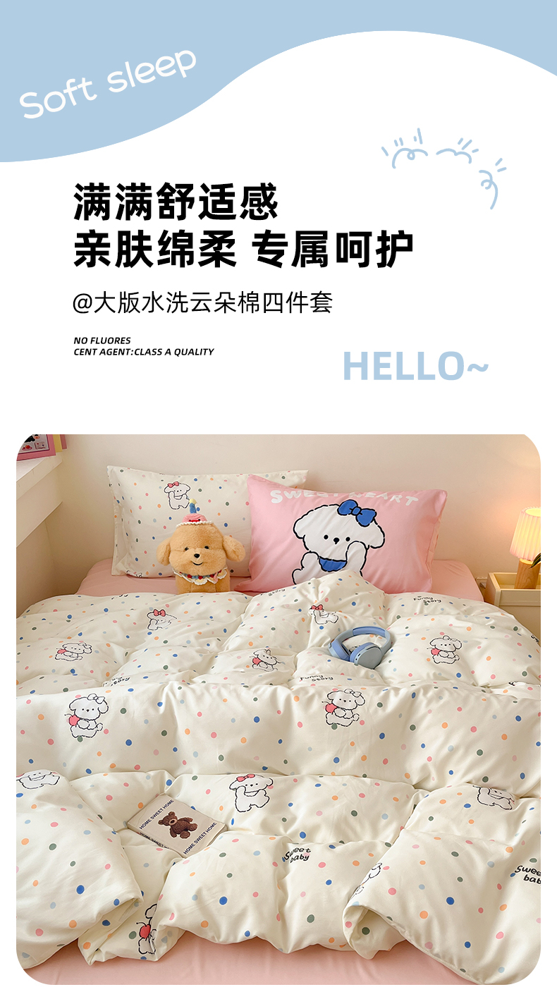 当前位置: 91家纺网 > 商品网购 > 床品套件 > 四件套 > 水洗棉四件套 > 好亿来家纺 2025新款水洗云朵棉大版枕套四件套单品系列-四件套 波点狗