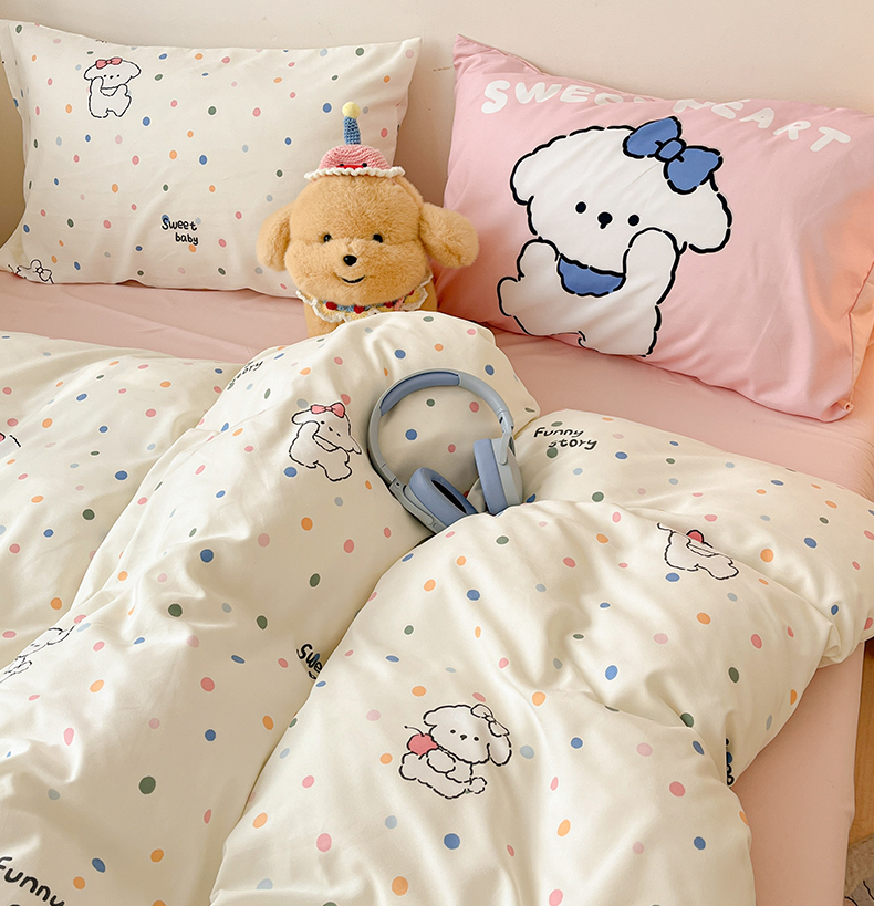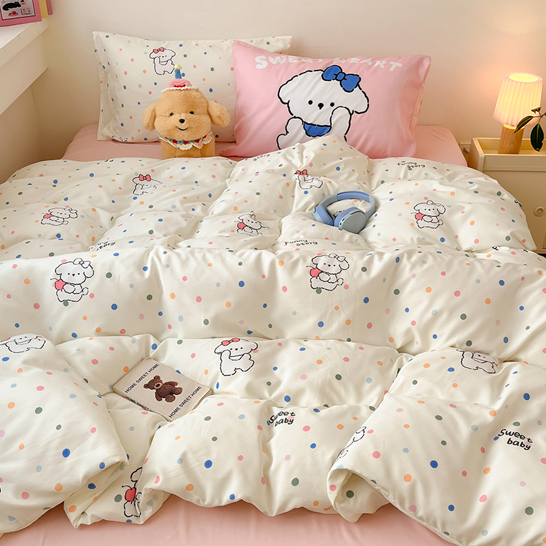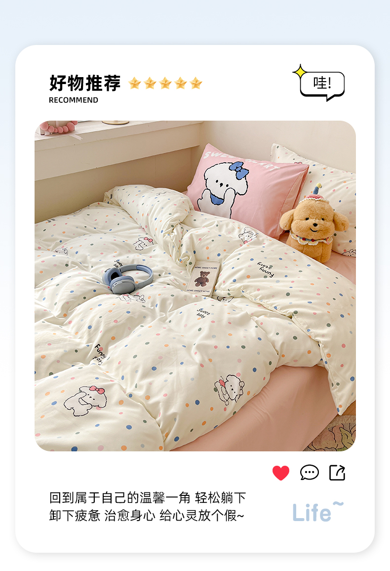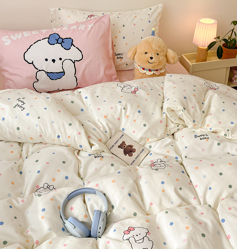 当前位置: 91家纺网 > 商品网购 > 床品套件 > 四件套 > 水洗棉四件套 > 好亿来家纺 2025新款水洗云朵棉大版枕套四件套单品系列-四件套 波点狗