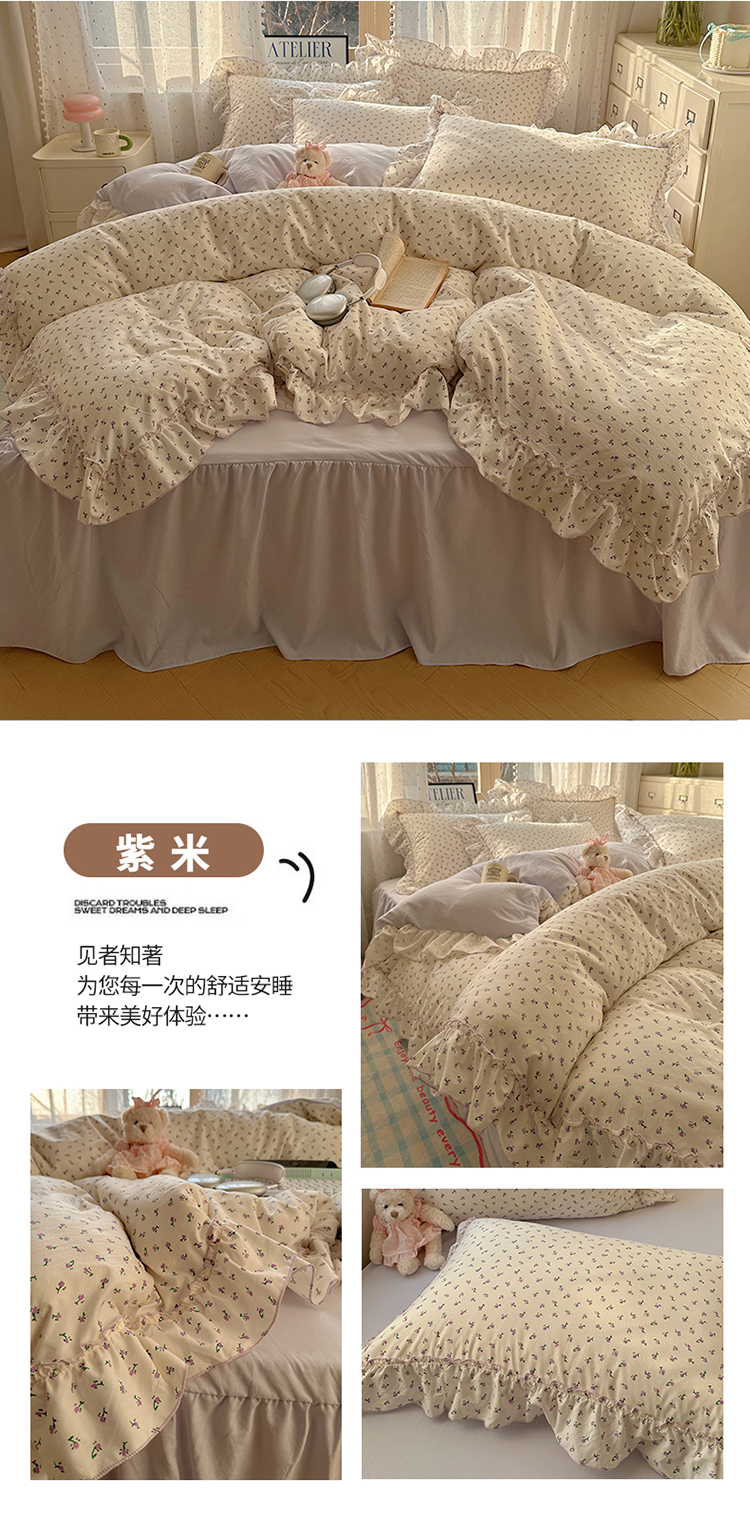 当前位置: 91家纺网 > 商品网购 > 床品套件 > 四件套 > 全棉普通四件套 > 轻奢坊 2025新款水洗棉密拷花边款 四件套 紫米