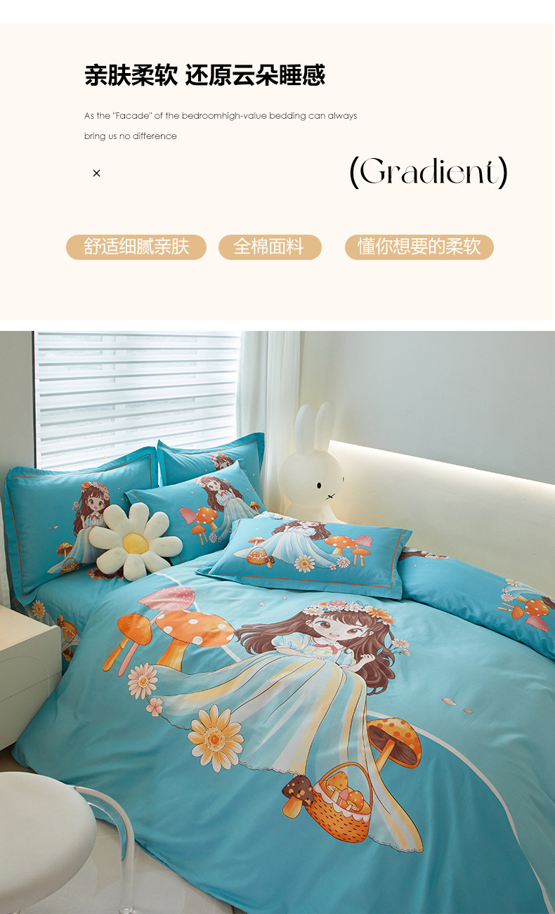 启航家居2025新款春夏直播爆款全棉大版印花四件套 少女时代兰