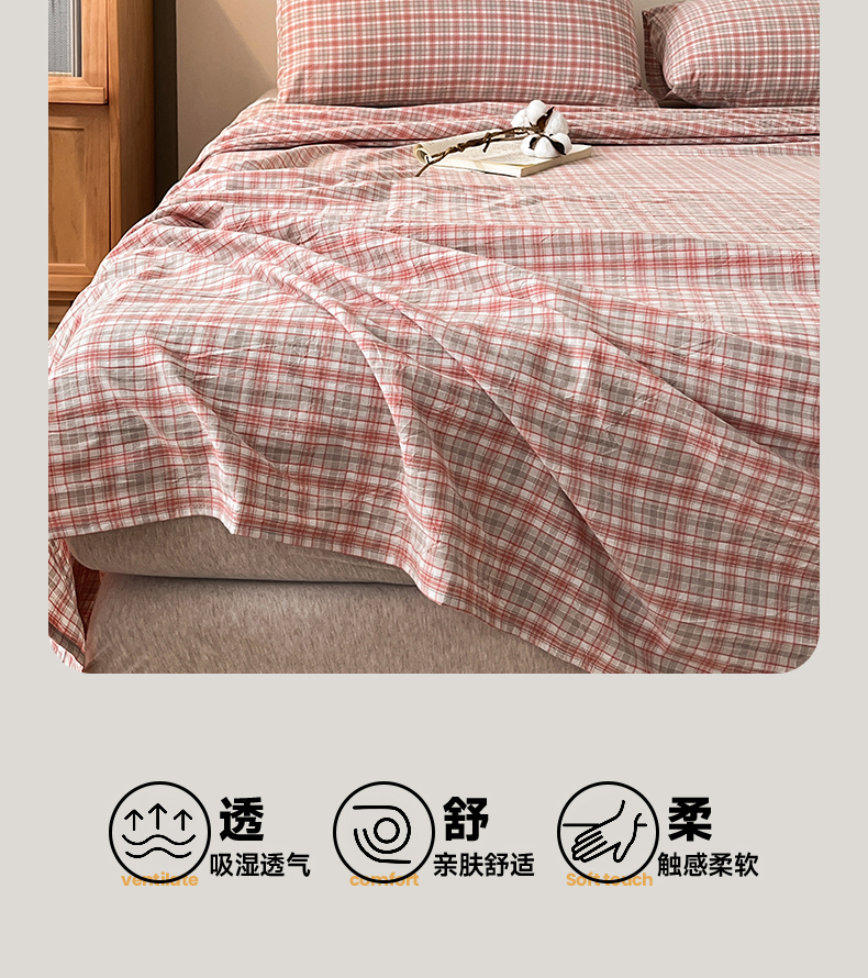 • 91家纺网 家纺一手货源 找家纺 21度C 2025新款A类全棉母婴级四件套单品系列-单床单 洋气红