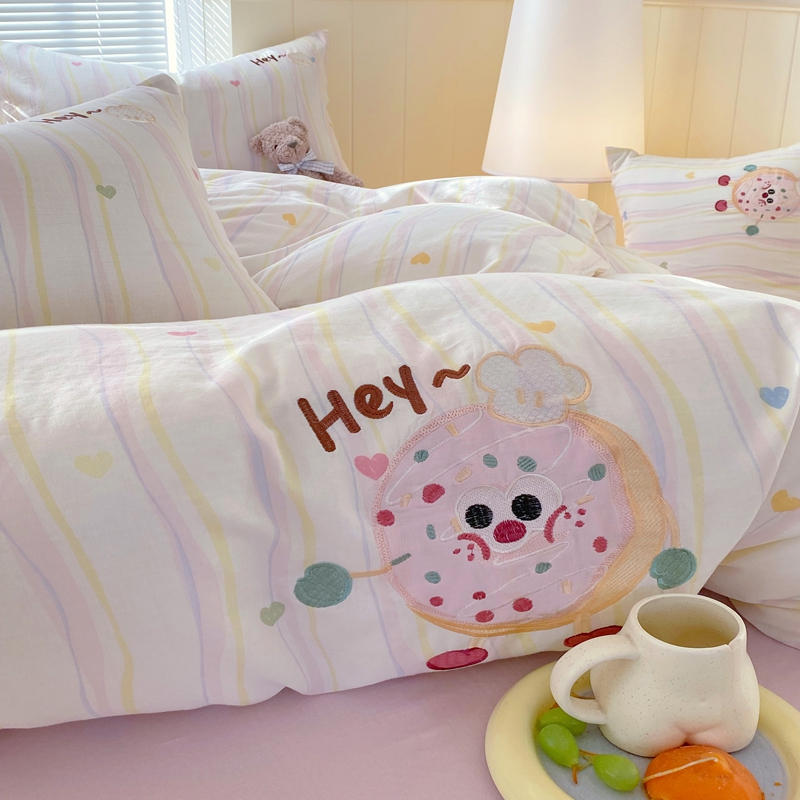 商品名称:于果 2025款全棉双层纱印加绣四件套 甜甜圈-粉
