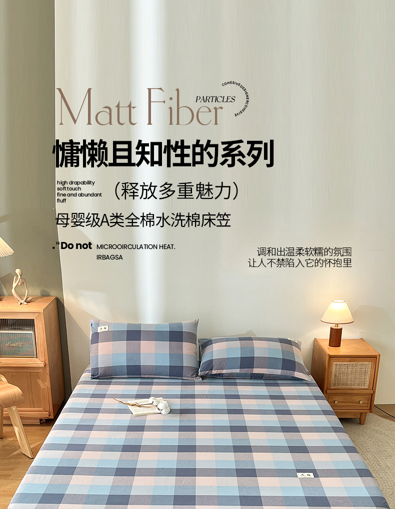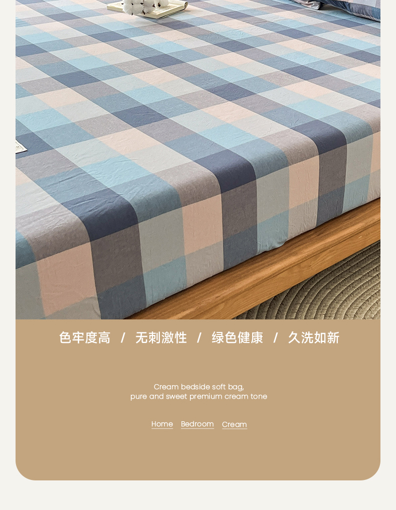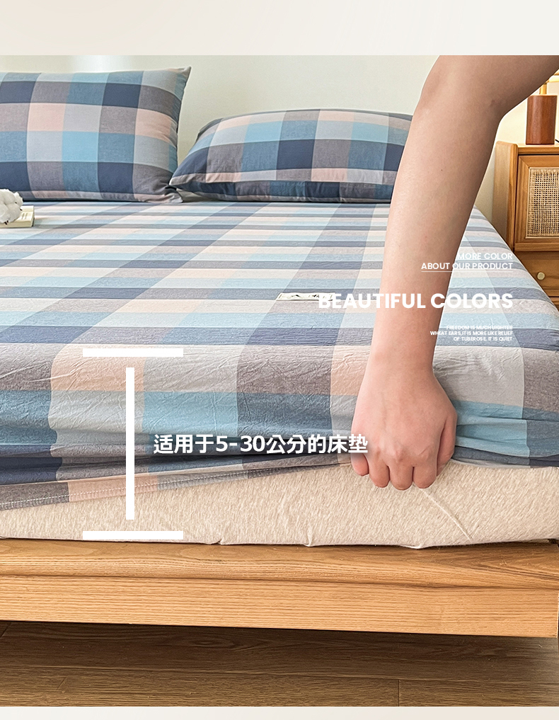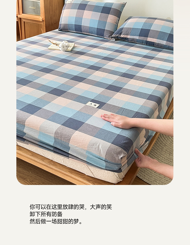 • 91家纺网 家纺一手货源 找家纺 21度C 2025新款A类全棉母婴级四件套单品系列-单床笠 青蓝格