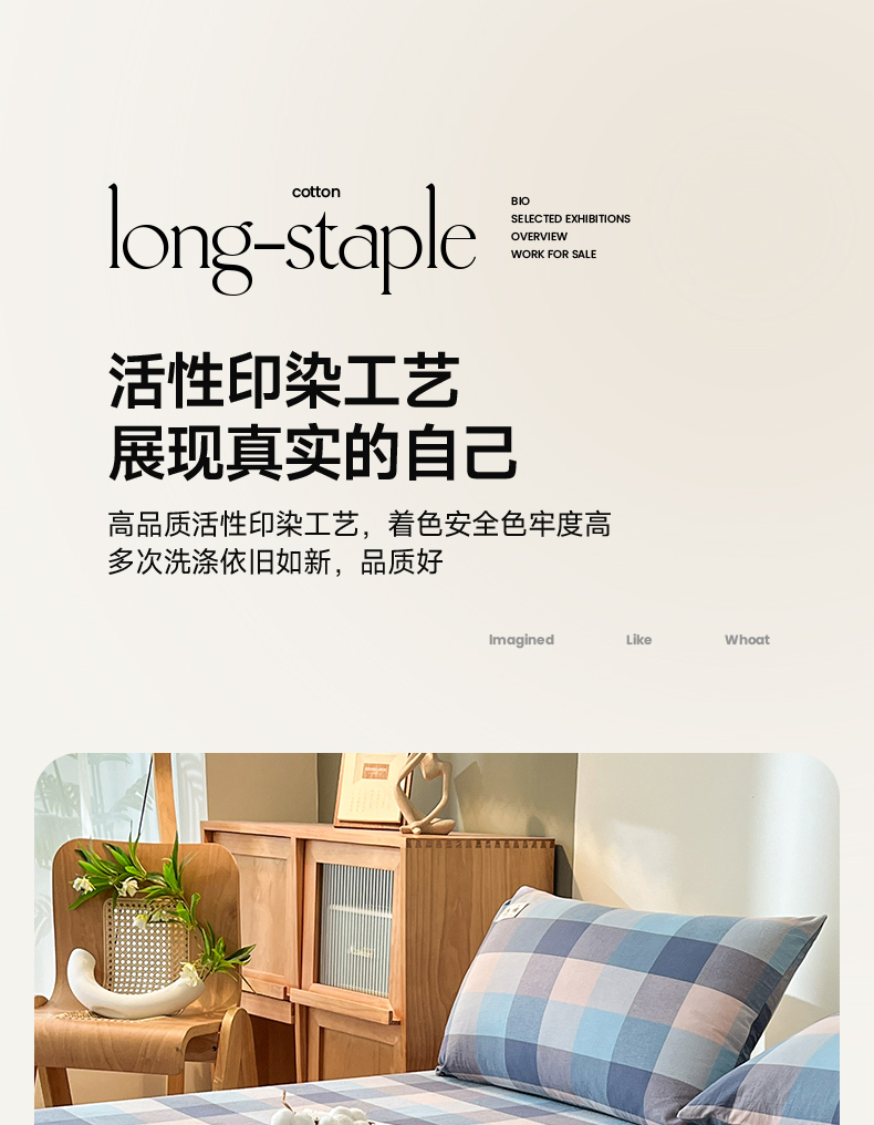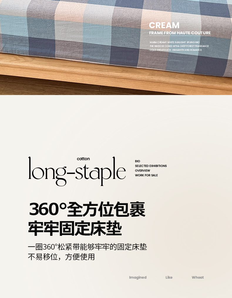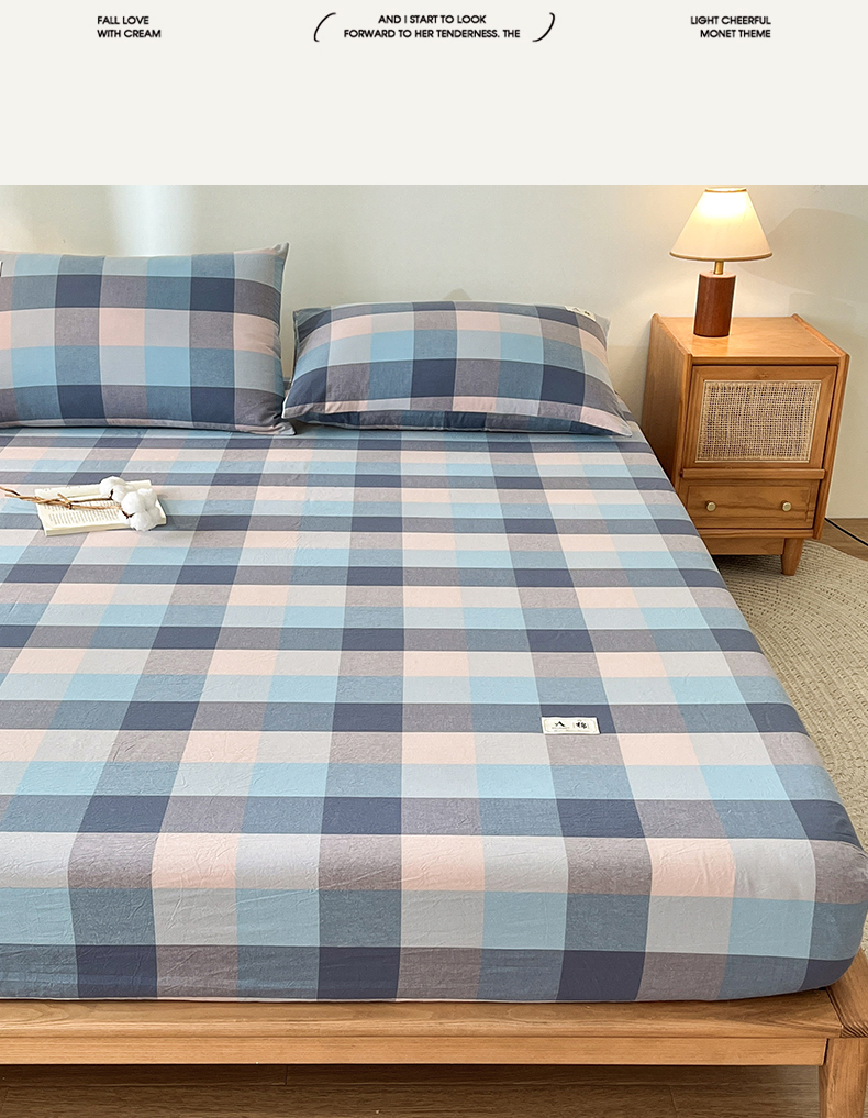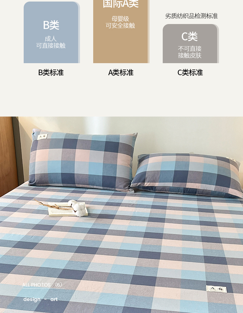 • 91家纺网 家纺一手货源 找家纺 21度C 2025新款A类全棉母婴级四件套单品系列-单床笠 青蓝格