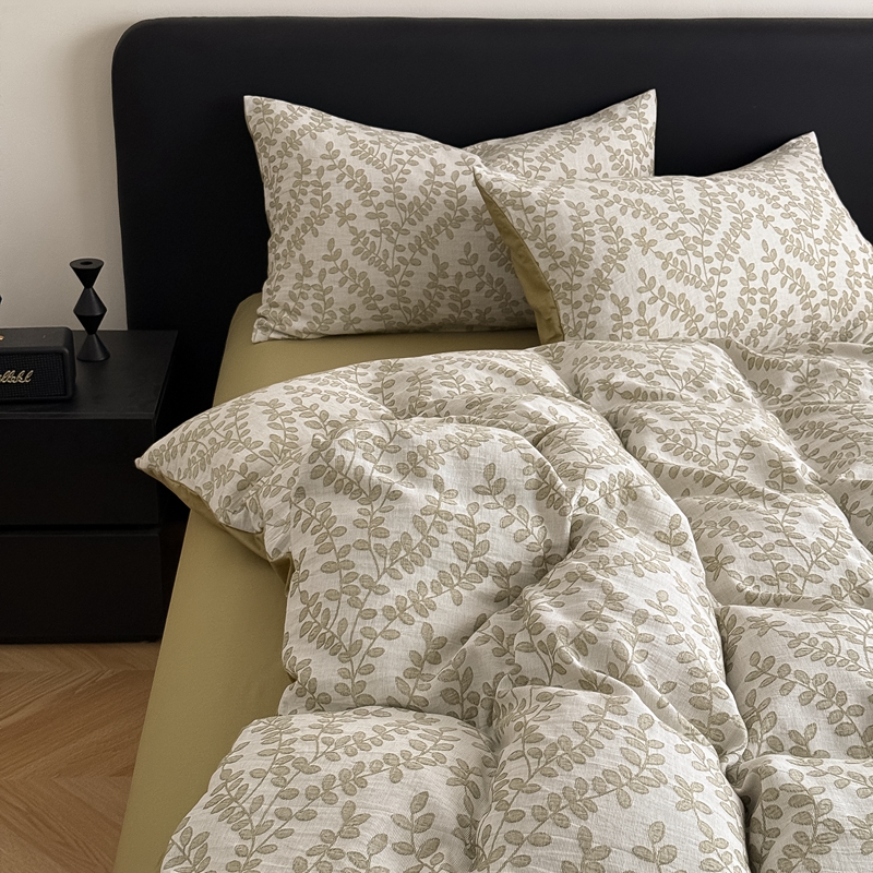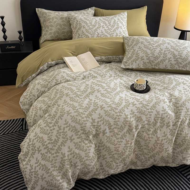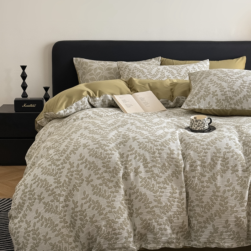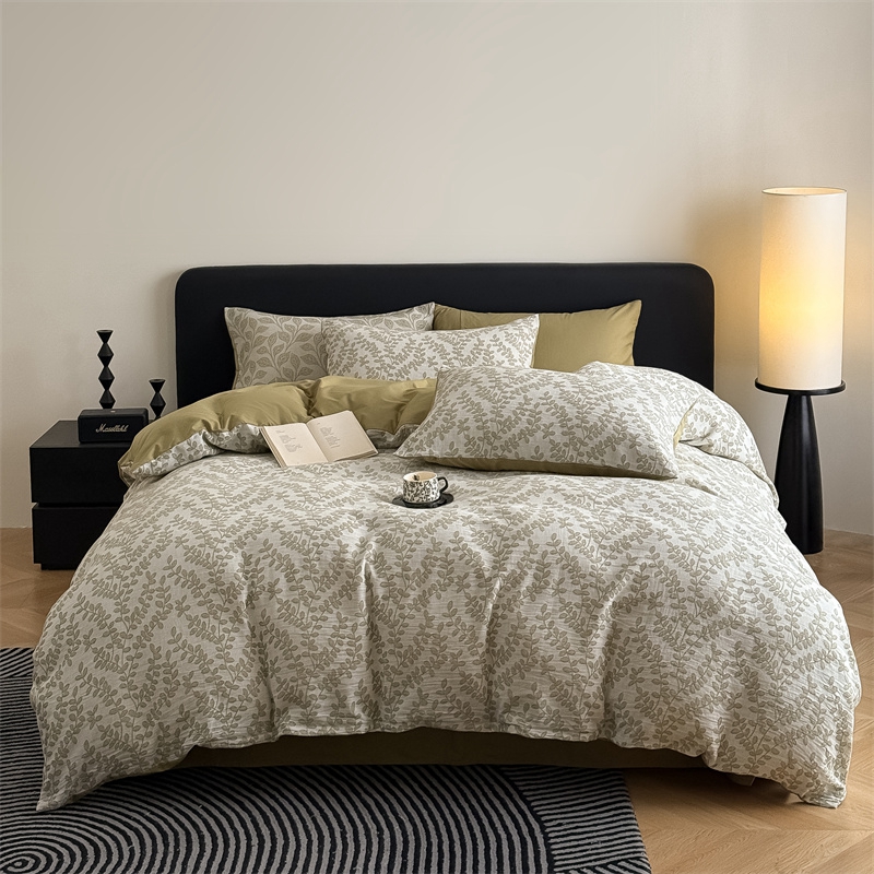 商品名称:水云缦 2025新款水云缦全棉三层纱色织大提花四件套 绿玲-果绿