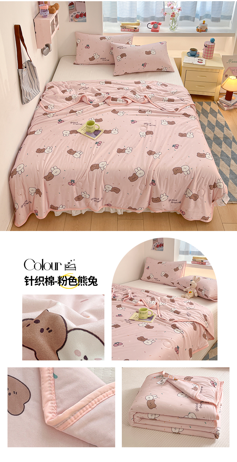 商品名称:桃子家居 2025新款A类高品质牛奶针织棉软糯大豆夏被 针织棉-粉色熊兔