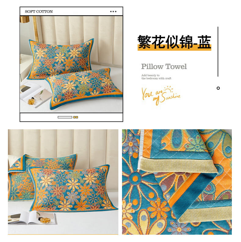 当前位置: 91家纺网 > 商品网购 > 床上用品 > 枕巾 > 朴尔家纺-毛巾被 2025新款全棉四层纱布色织提花宽边时尚枕巾 繁花似锦-蓝