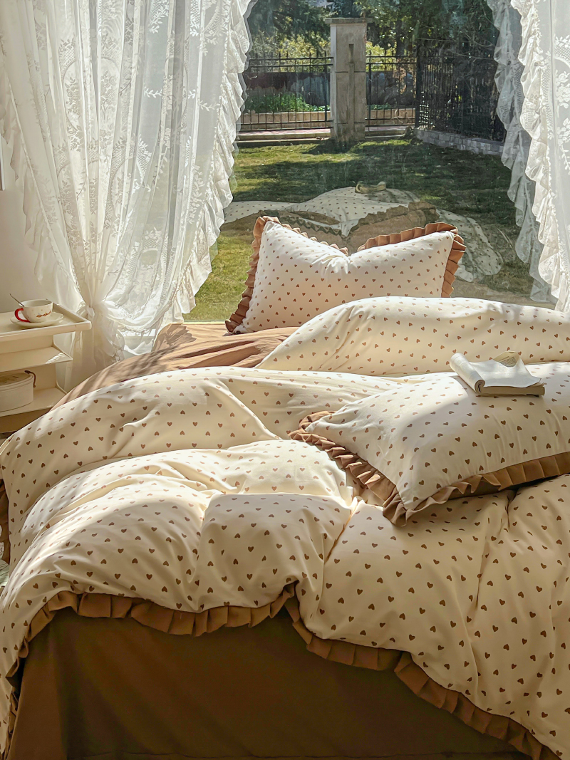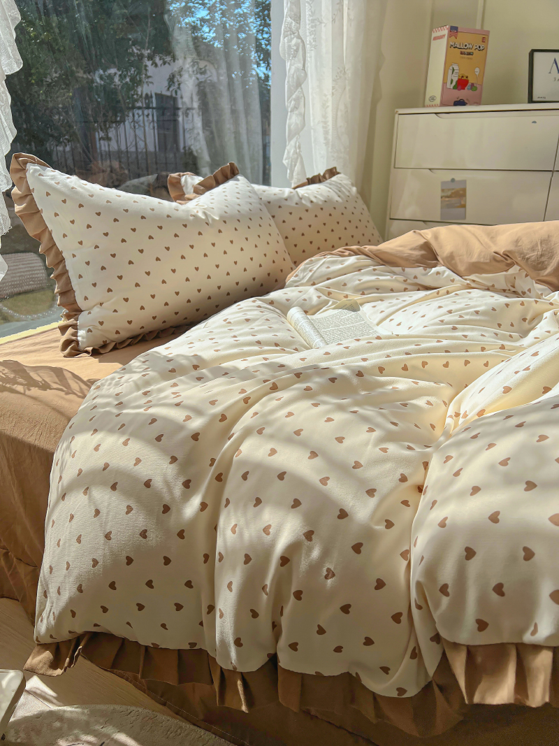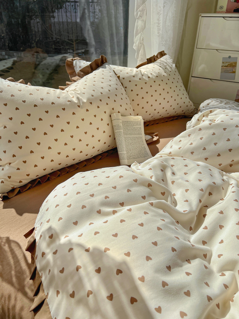 欧尚 2025新款针织棉双层纱四件套 咖爱心