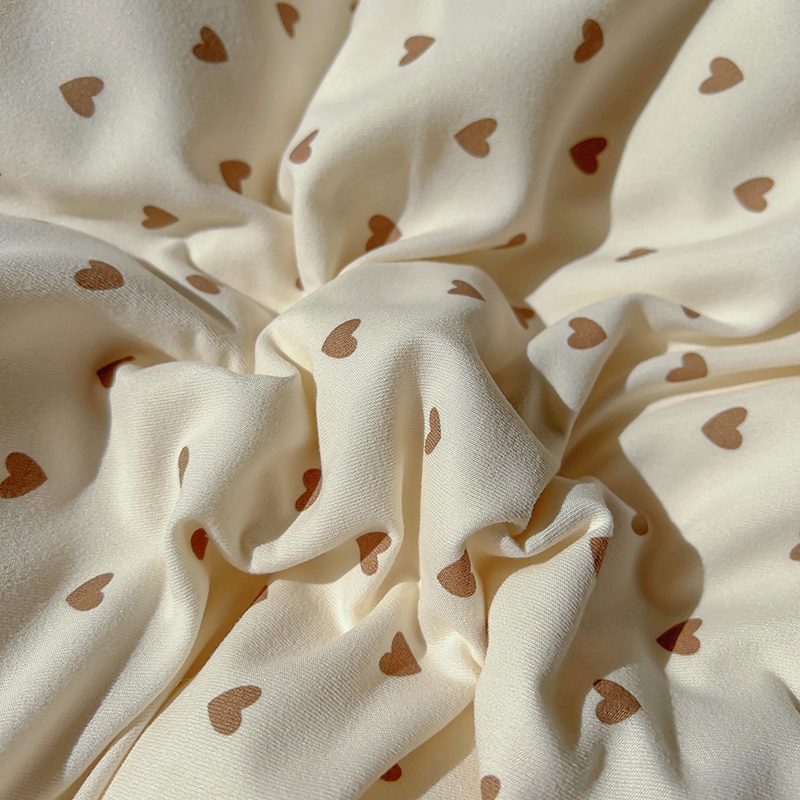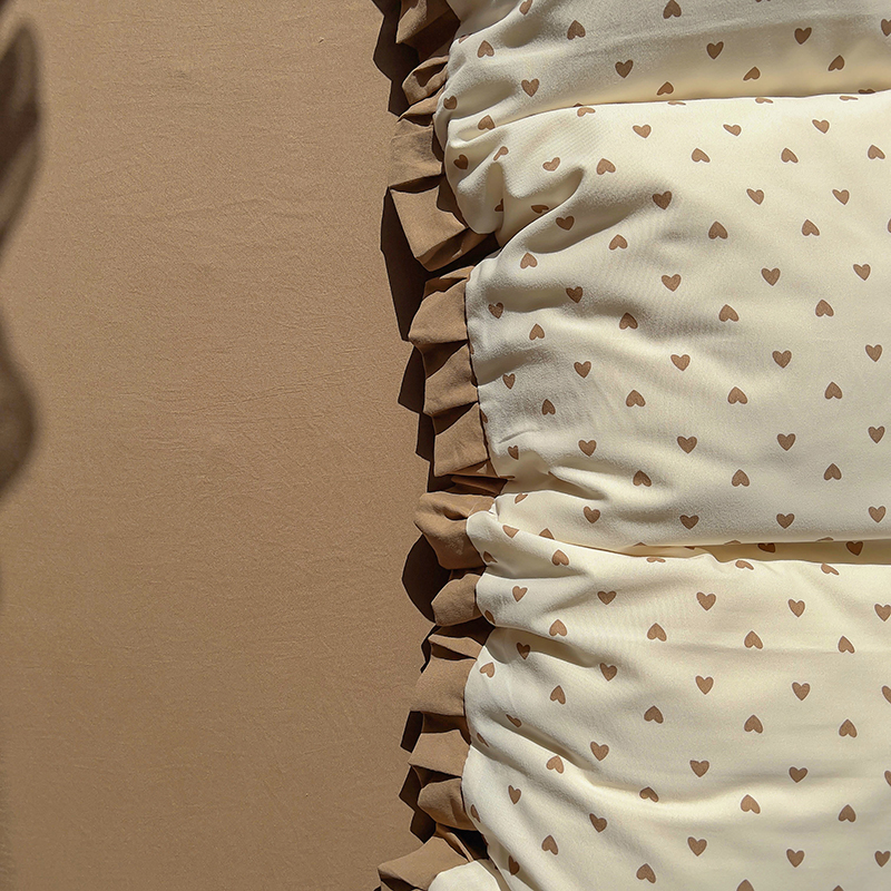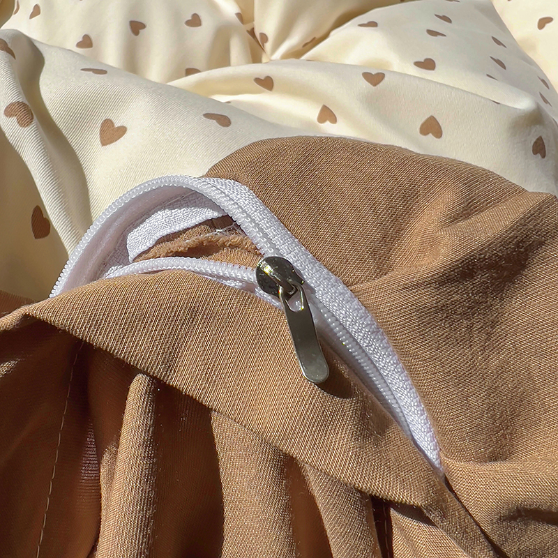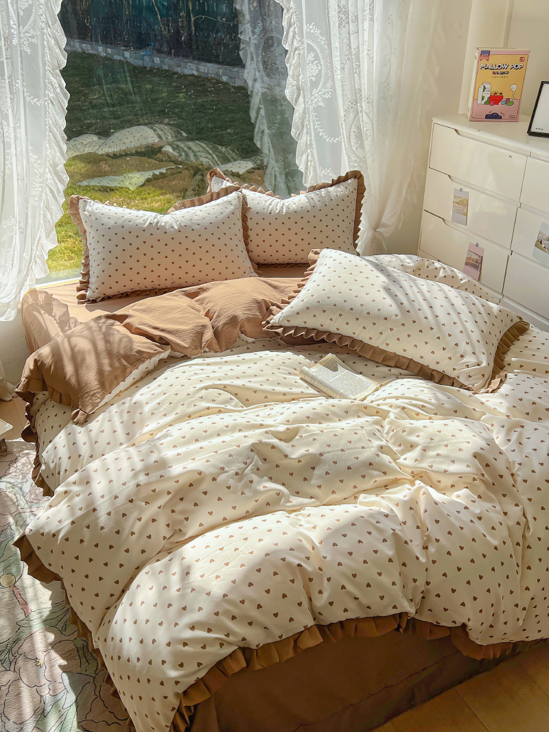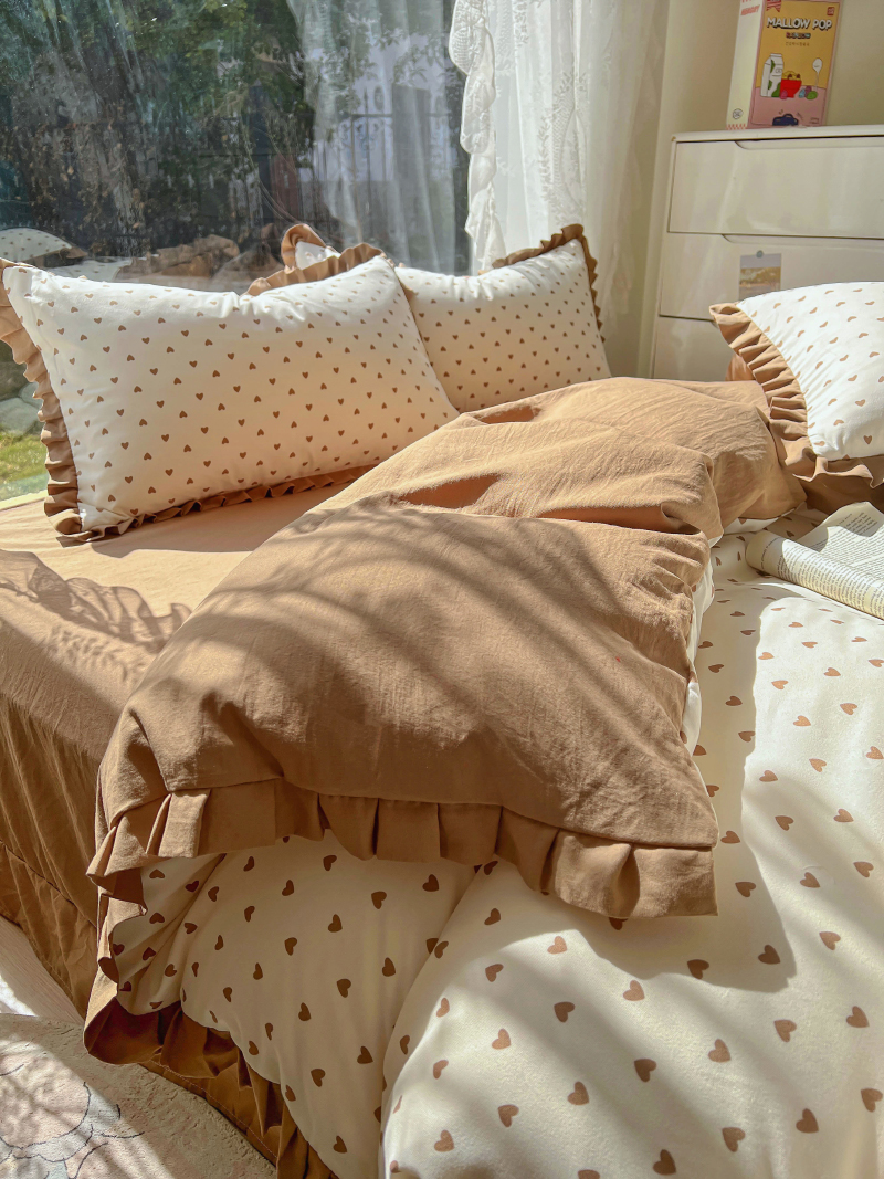 商品名称:欧尚 2025新款针织棉双层纱四件套 咖爱心