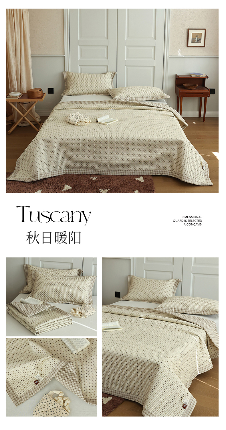 商品名称:富瑞阁 2025新款ins风韩版AB全棉纯棉多功能床盖夏被盖毯单品件套三件套 秋日暖阳