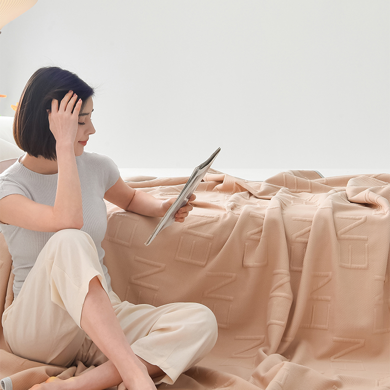 (总)米奈家居 2025全棉针织棉提花多功能盖毯,豆沙粉EN,豆沙粉H,公主粉,莱茵绿,玛雅灰,柠檬黄,绅士灰,天空蓝,香槟金EN,香槟金H,星空灰