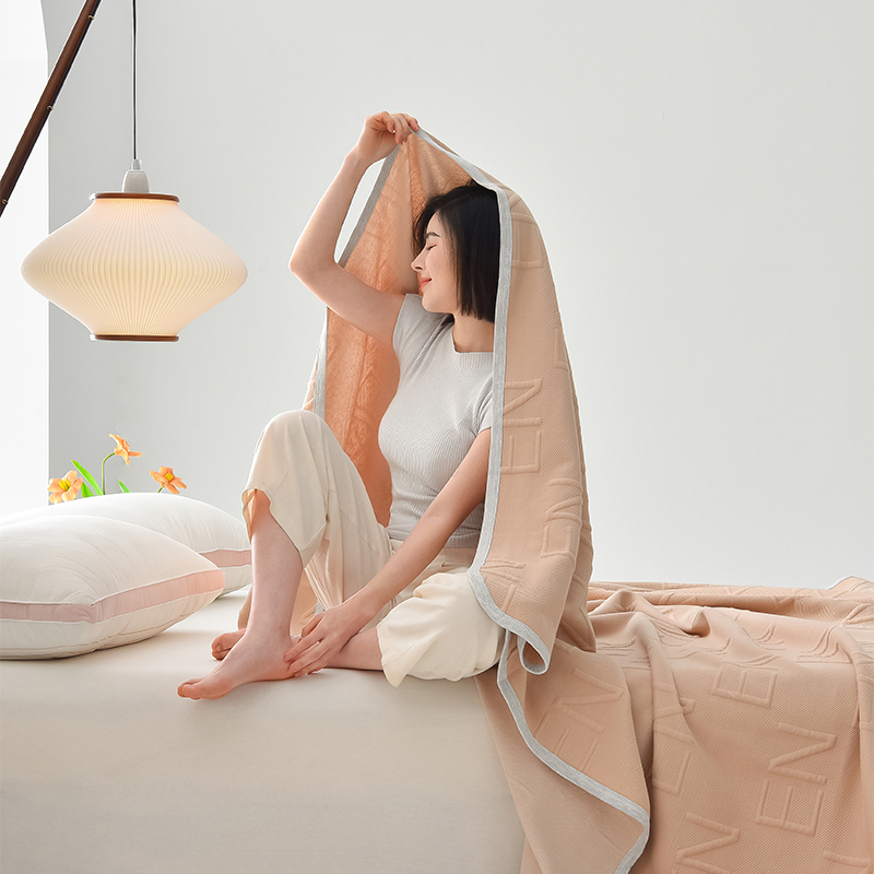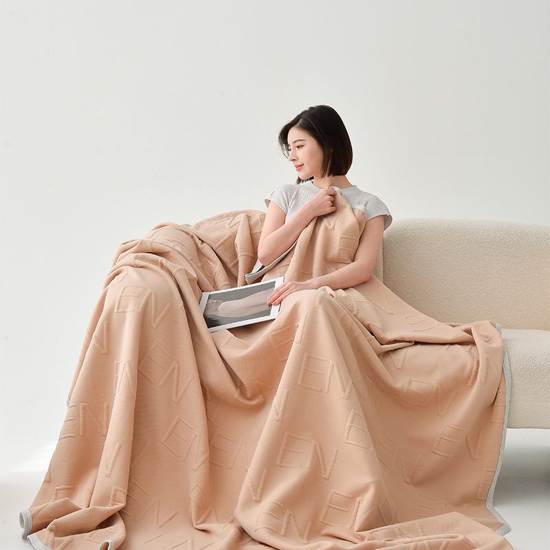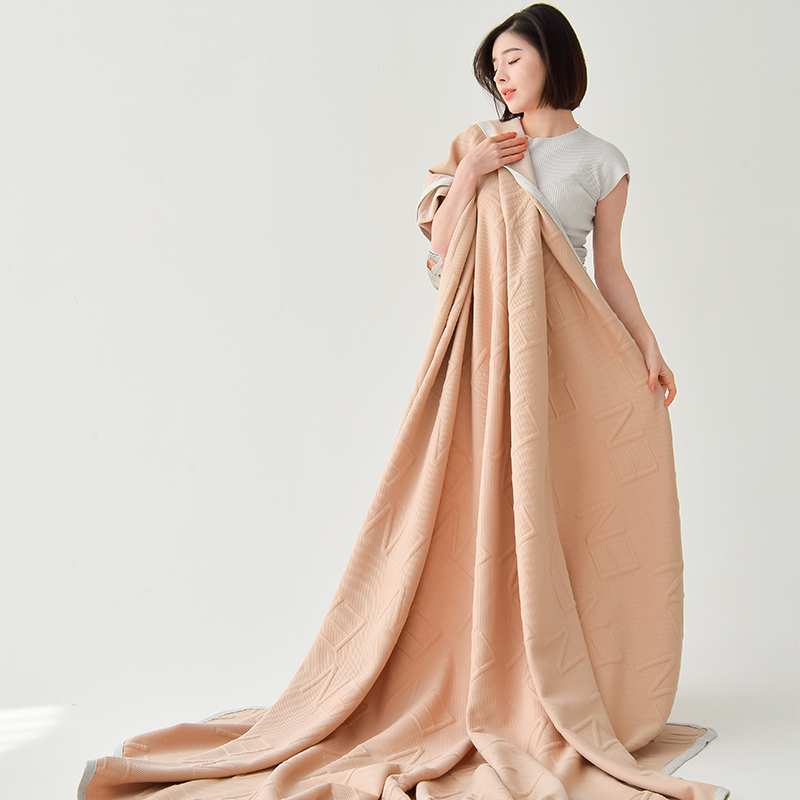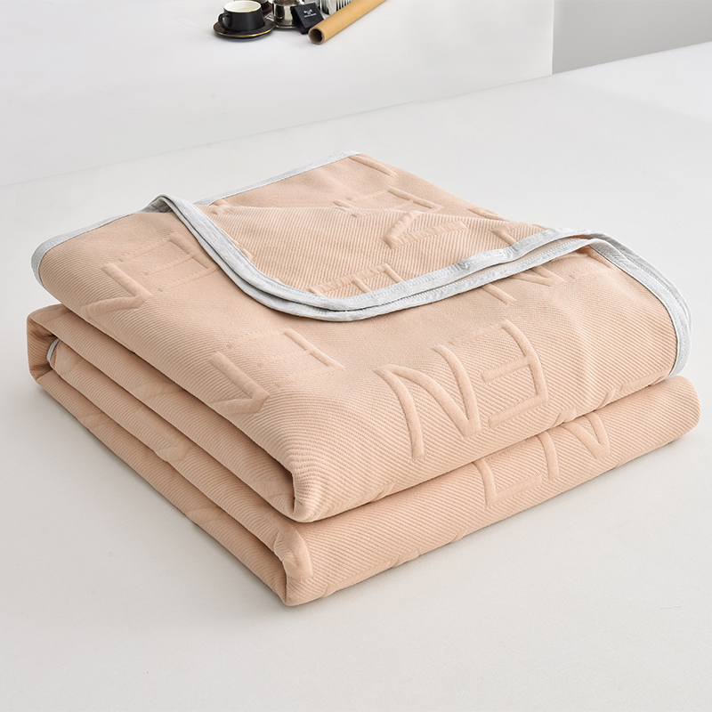 商品名称:米奈家居 2025全棉针织棉提花多功能盖毯 香槟金EN