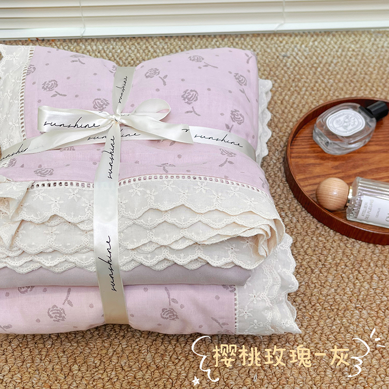 荣轩家居 2025新款全棉双层纱镂空花边工艺款四件套 海派甜心