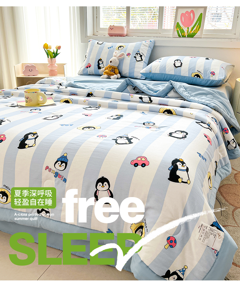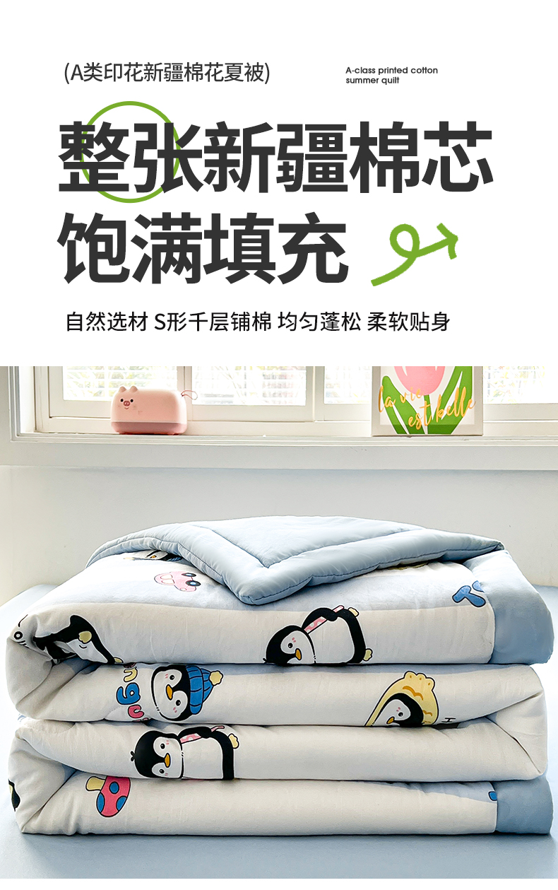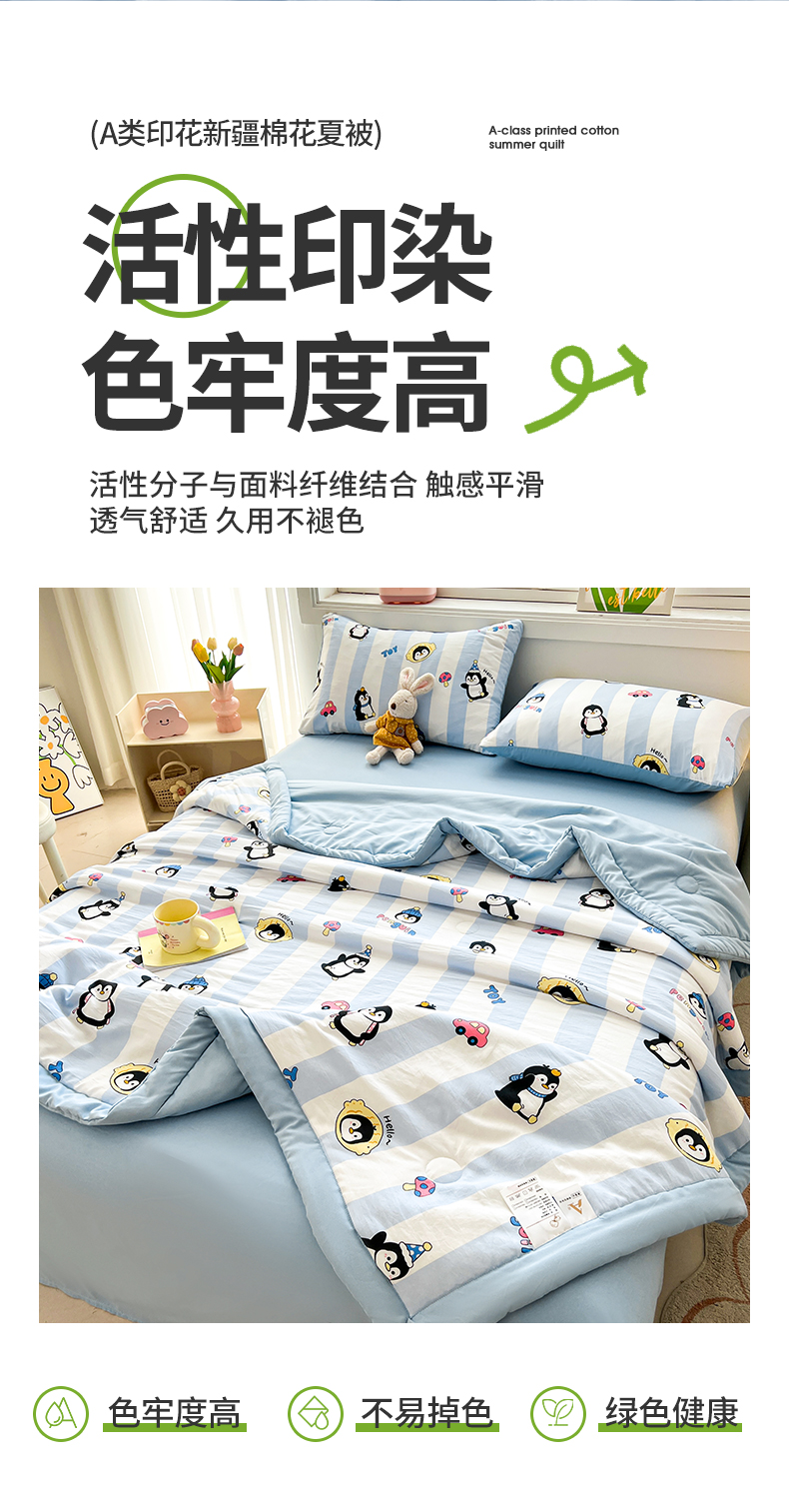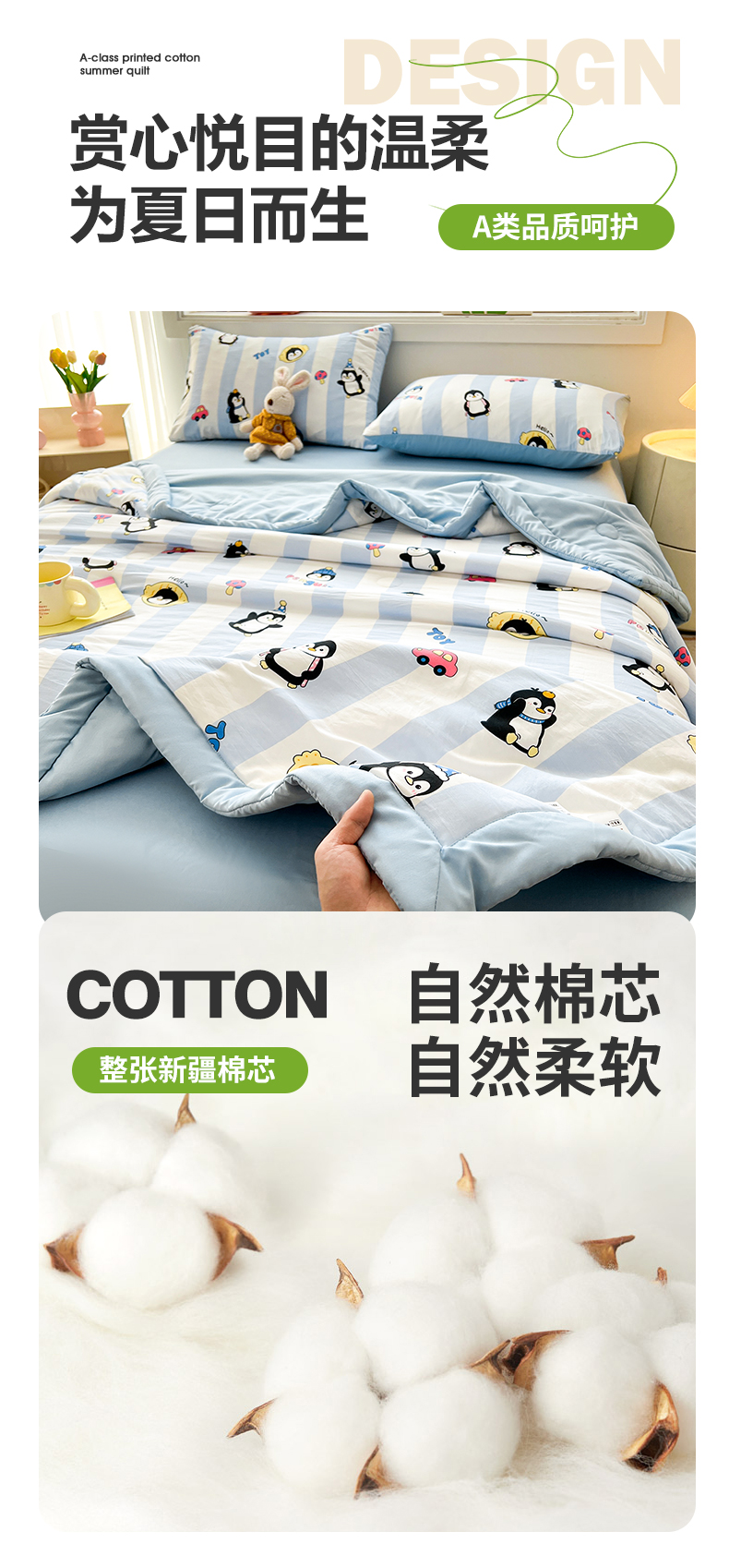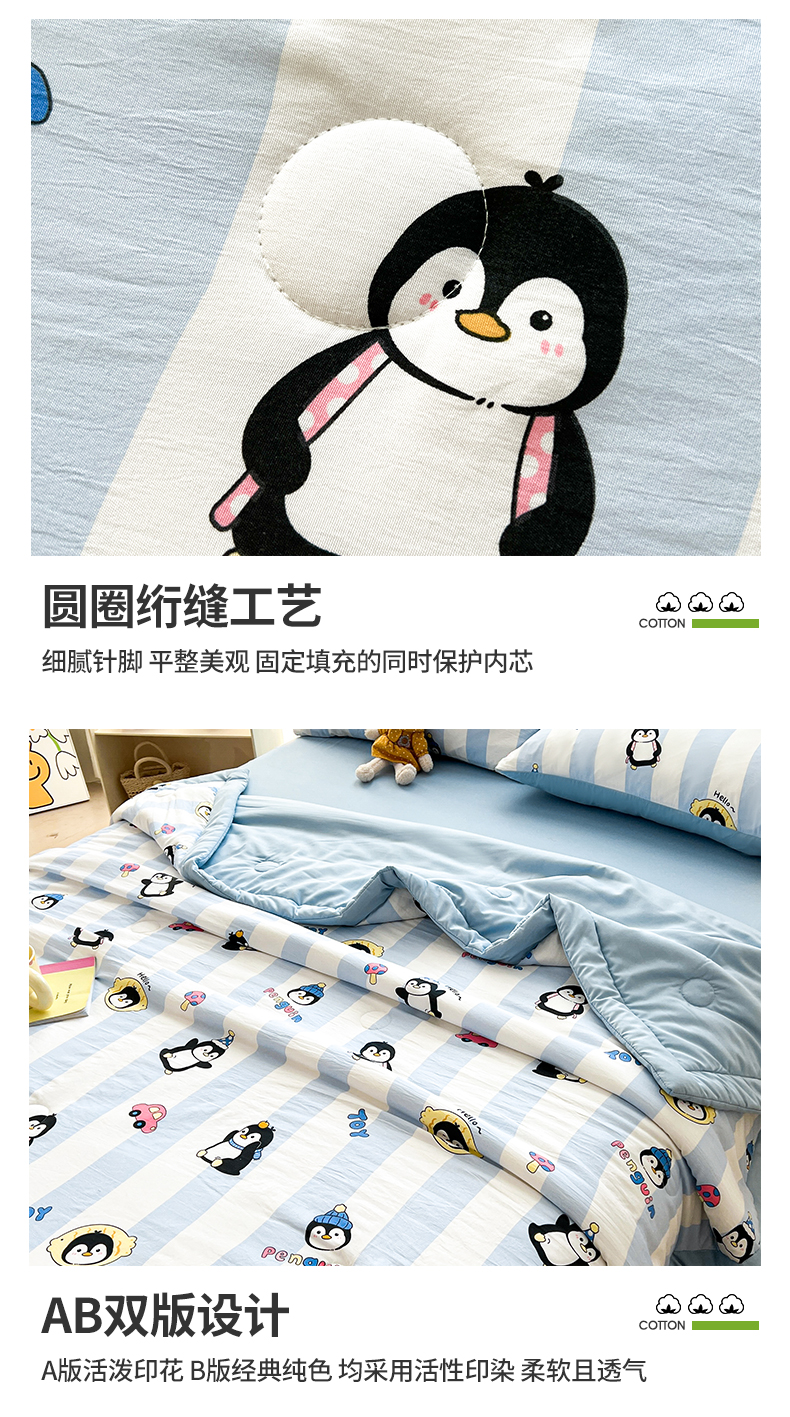 商品名称:晓时候 2025新款水洗棉夏被新疆棉花被印花夏凉被空调被薄被子 呆萌企鹅