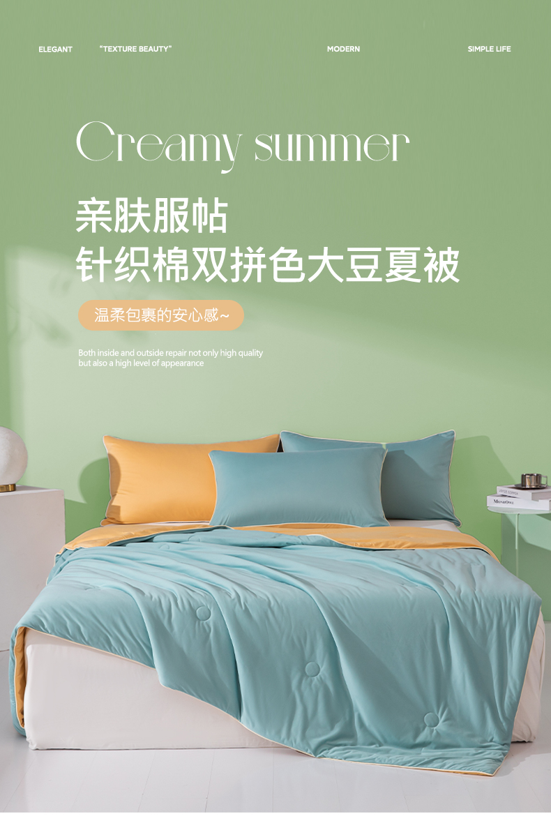 商品名称:吾诺 2025 针织棉夏被双拼色大豆夏被子被芯夏凉被空调被 星兰-杏黄