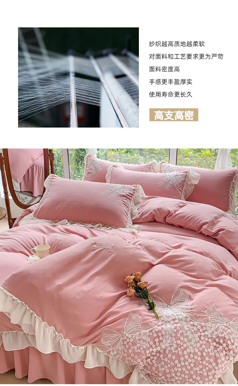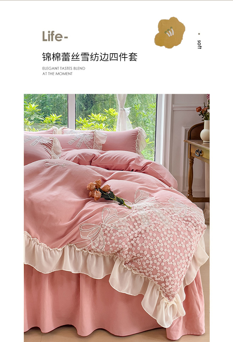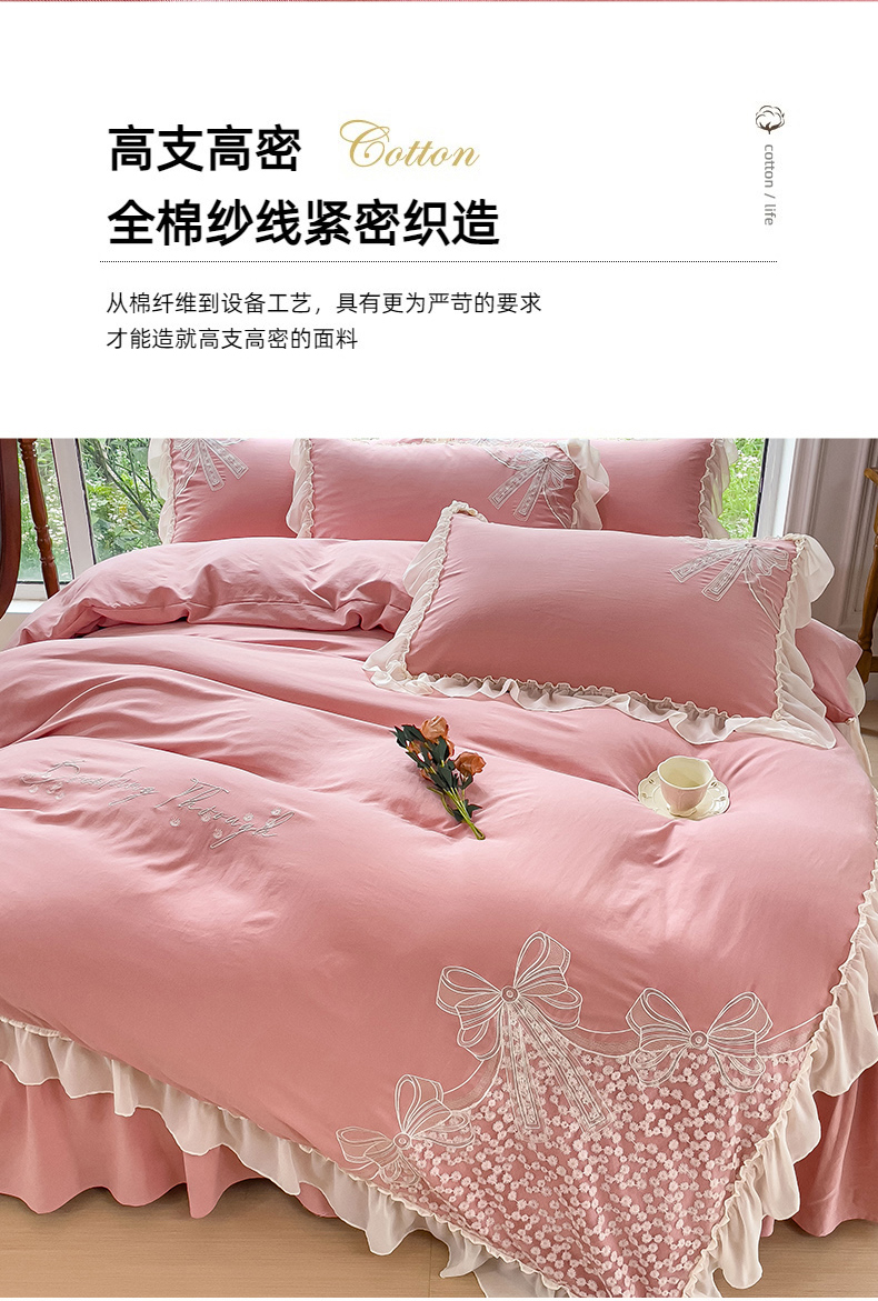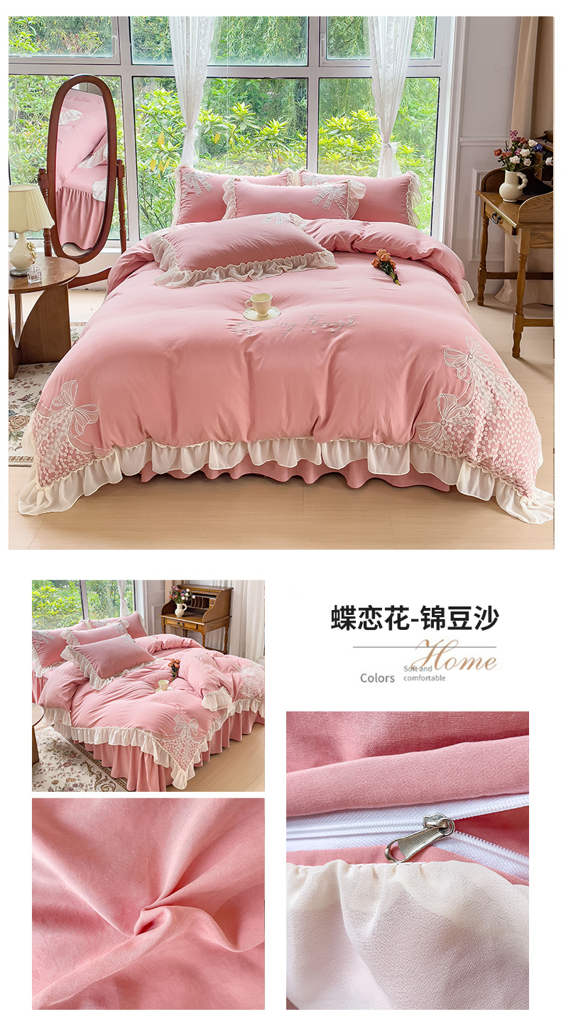 商品名称:睡美人 2025韩版全锦棉刺绣公主风蕾丝床裙款四件套-蝶恋花 蝶恋花-锦豆沙