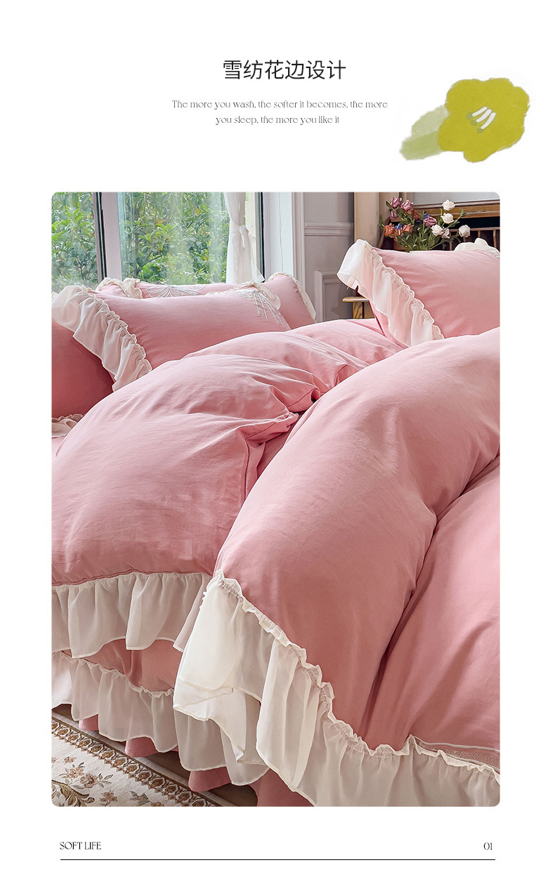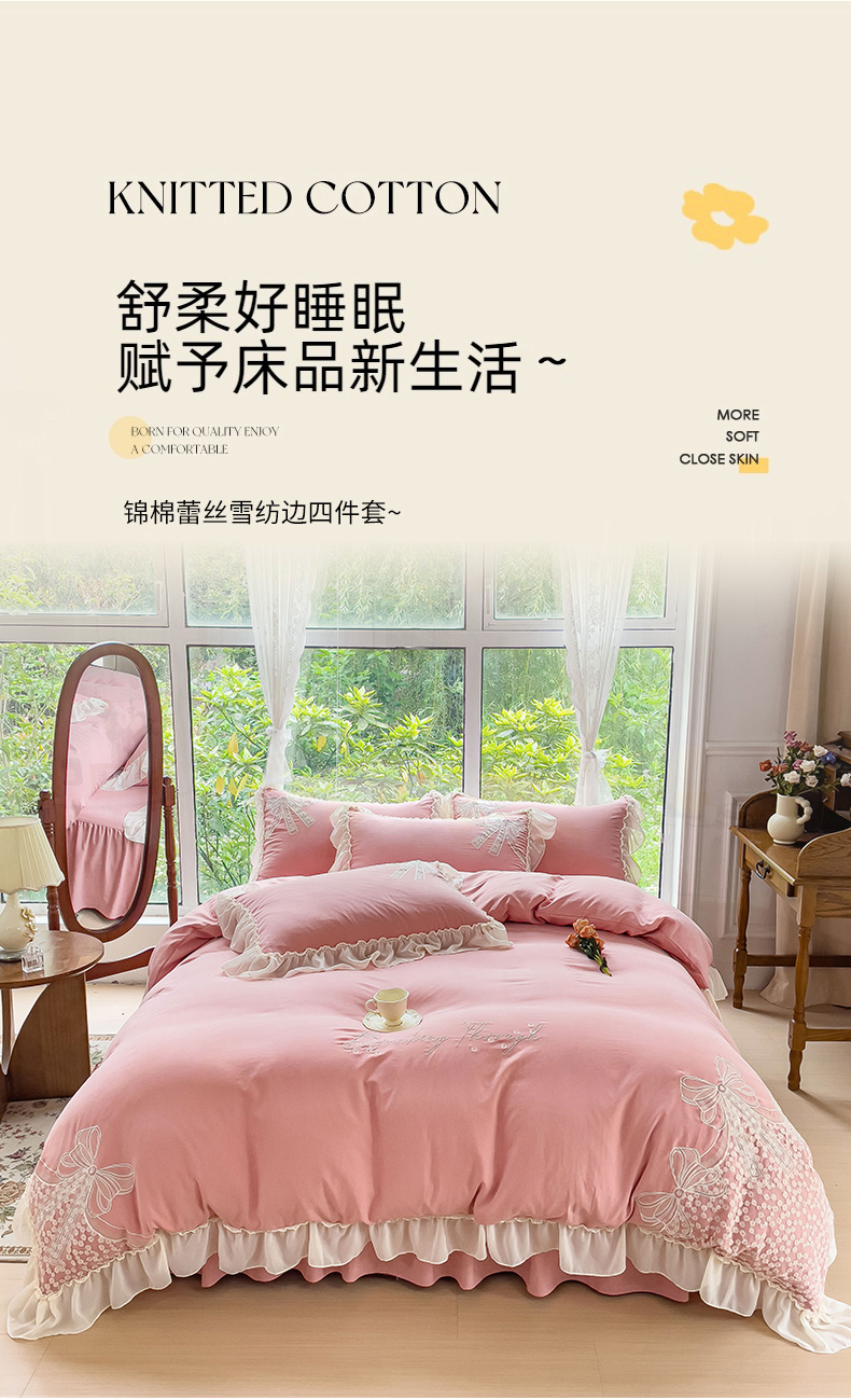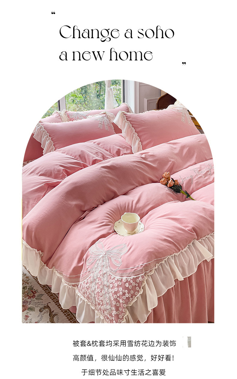 商品名称:睡美人 2025韩版全锦棉刺绣公主风蕾丝床裙款四件套-蝶恋花 蝶恋花-锦豆沙
