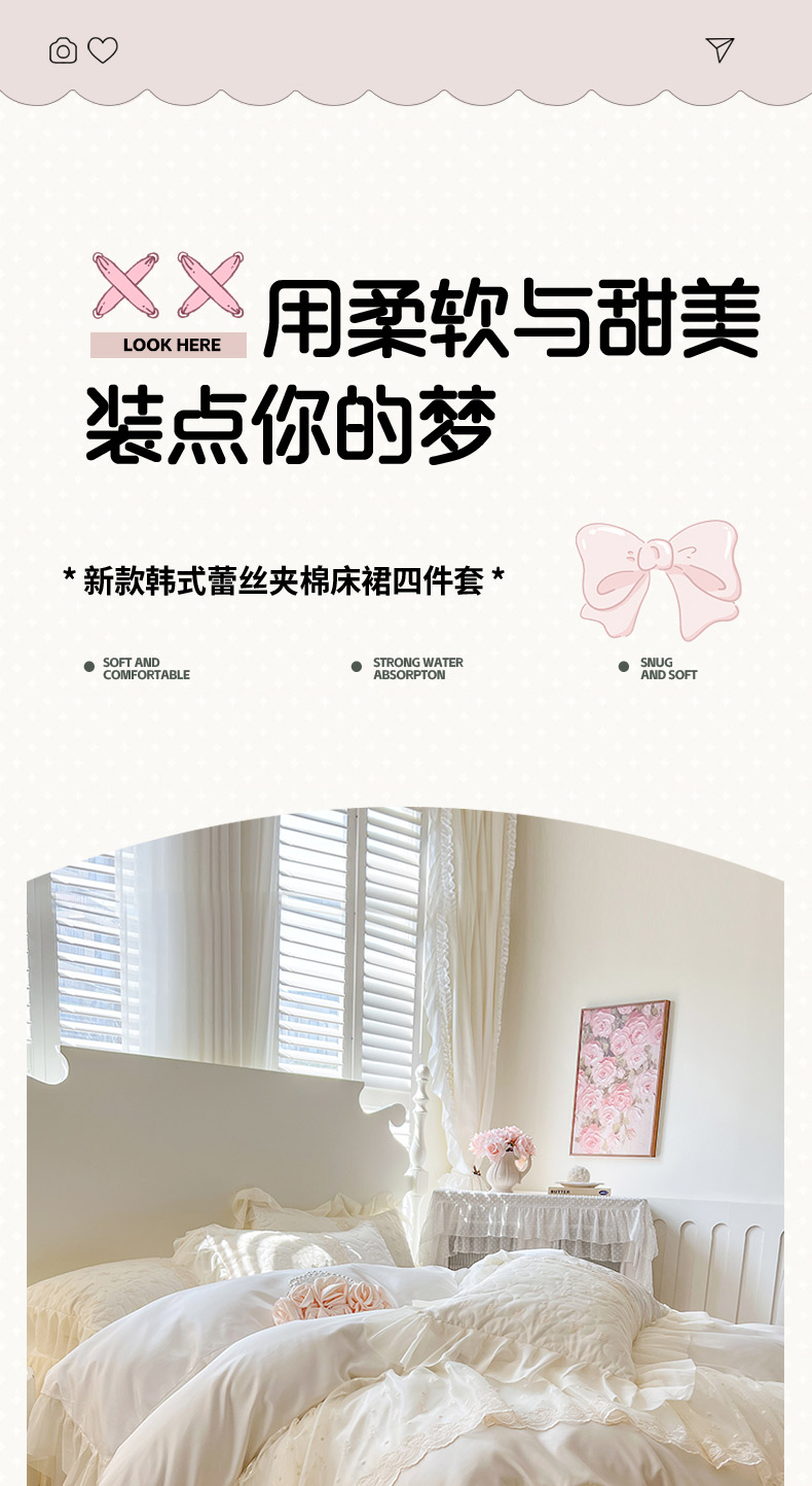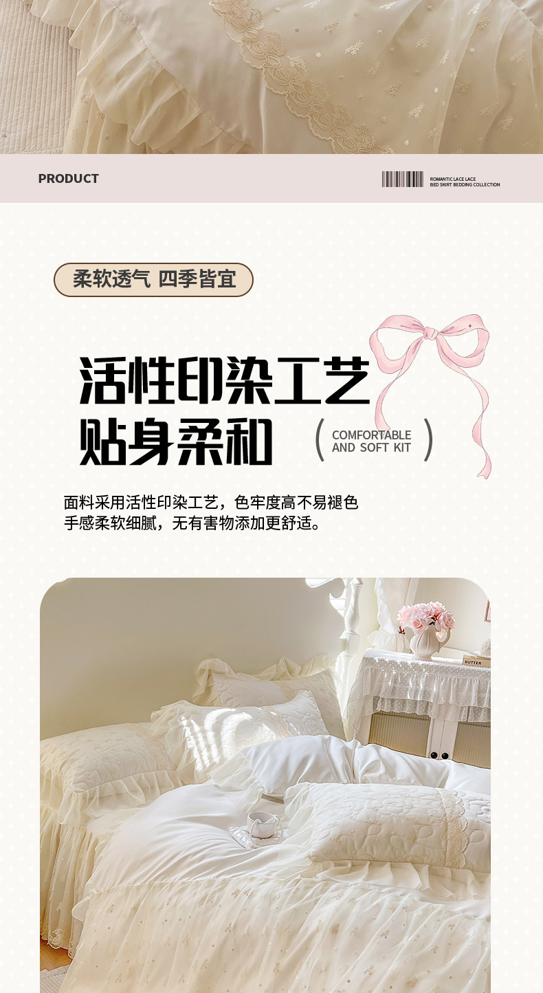 (总)恋尚 2025新款全棉纯棉蕾丝印花床笠裙四件套,芙微,花蝶语,花牺,蔓朵,浅栀,夏瑶,向朵,寻芳朵朵,荨花