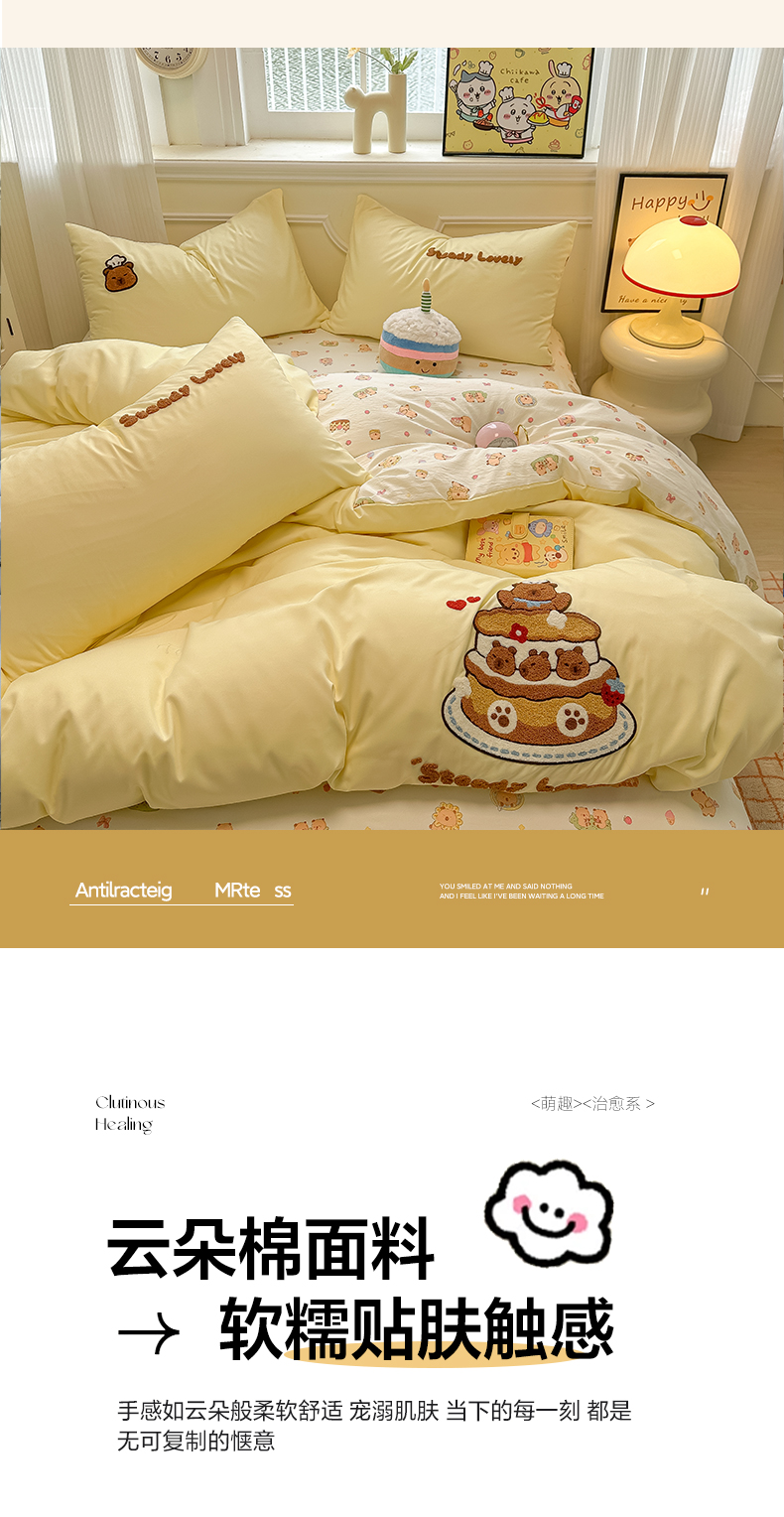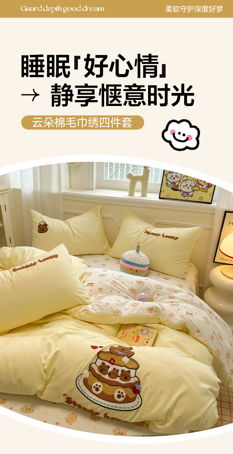 当前位置: 91家纺网 > 商品网购 > 床品套件 > 四件套 > 毛巾绣四件套 > 韩巢家纺 2025新款云朵棉印花毛巾绣四件套(提供买家秀) 卡哇伊星