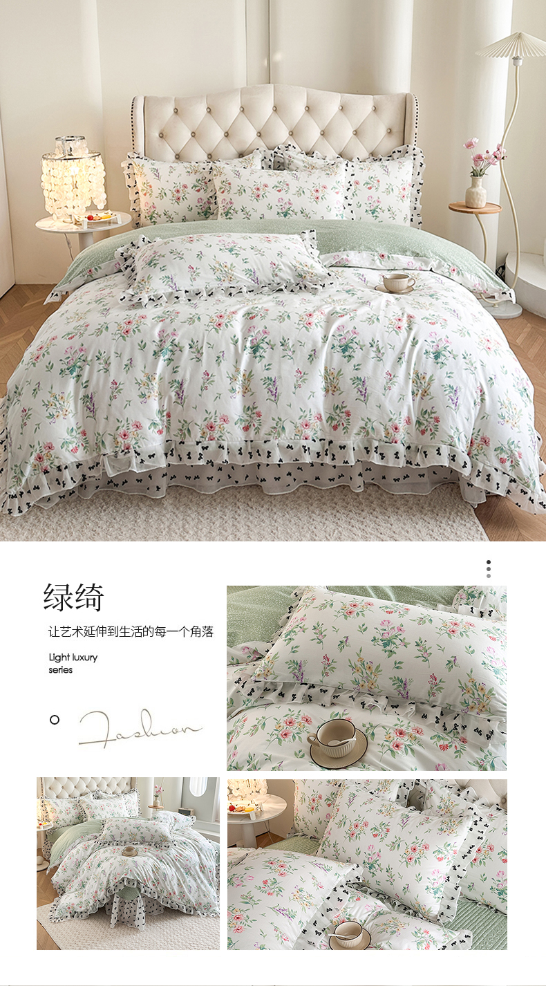 美伦美焕 2025新款全棉印花床盖四件套 绿绮