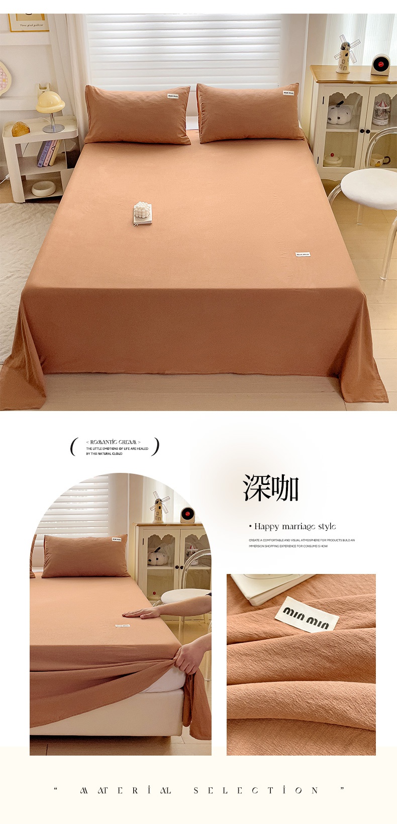 商品名称:罗亿家纺 2025新款云感提花双层纱定标minmin(系列)床单 深咖