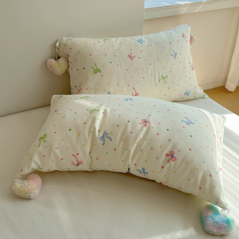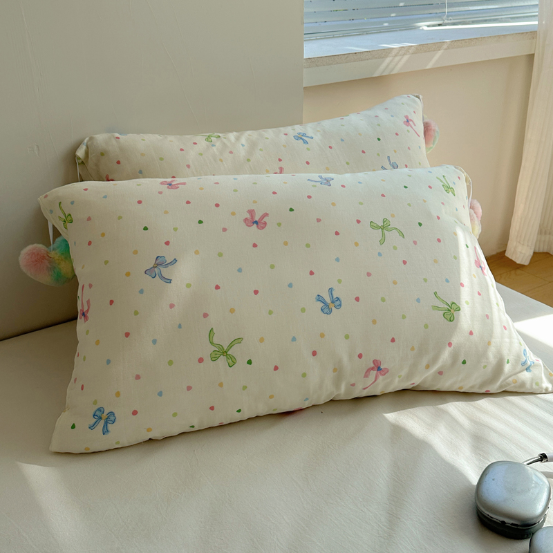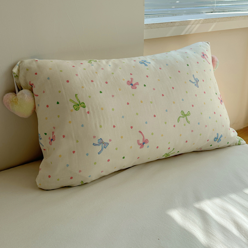 商品名称:丽涵家纺 2025新款全棉双层纱枕头套-毛球款 少女日记