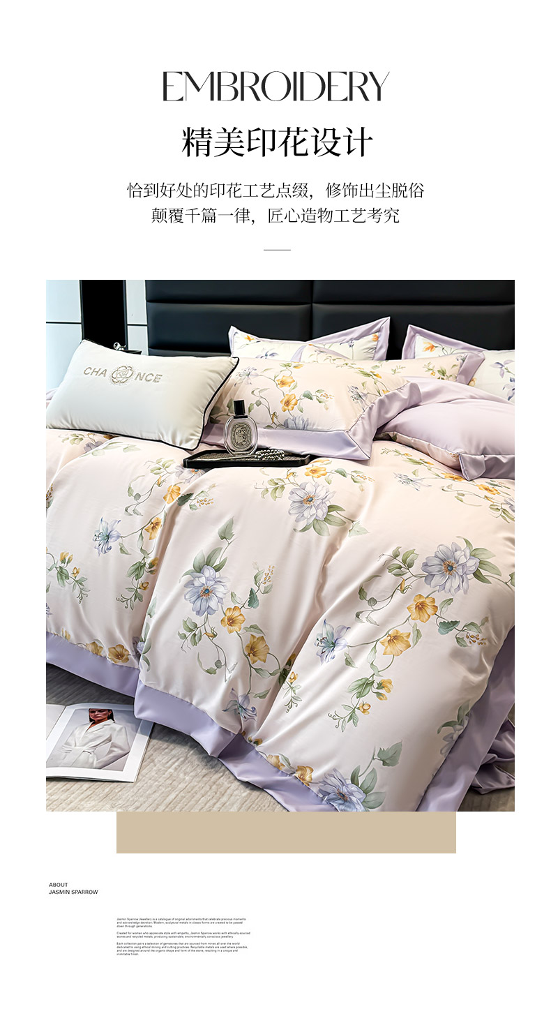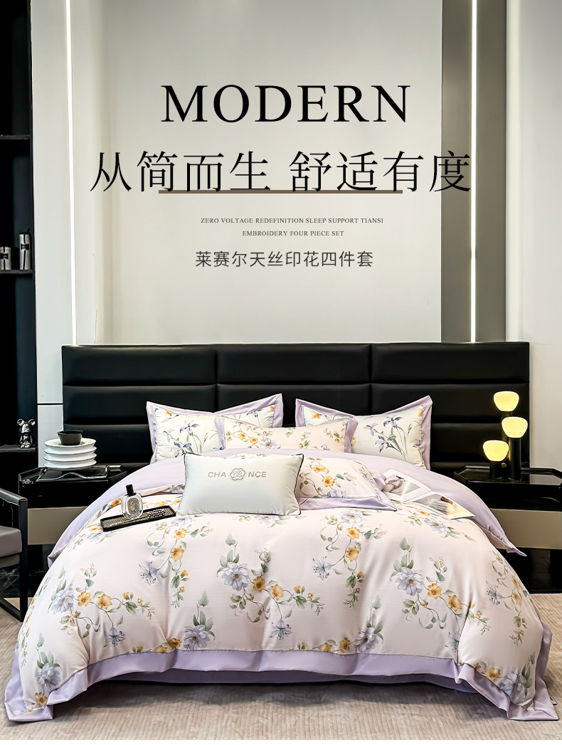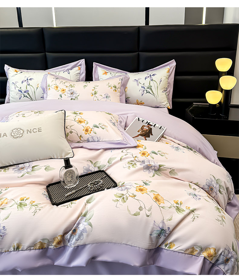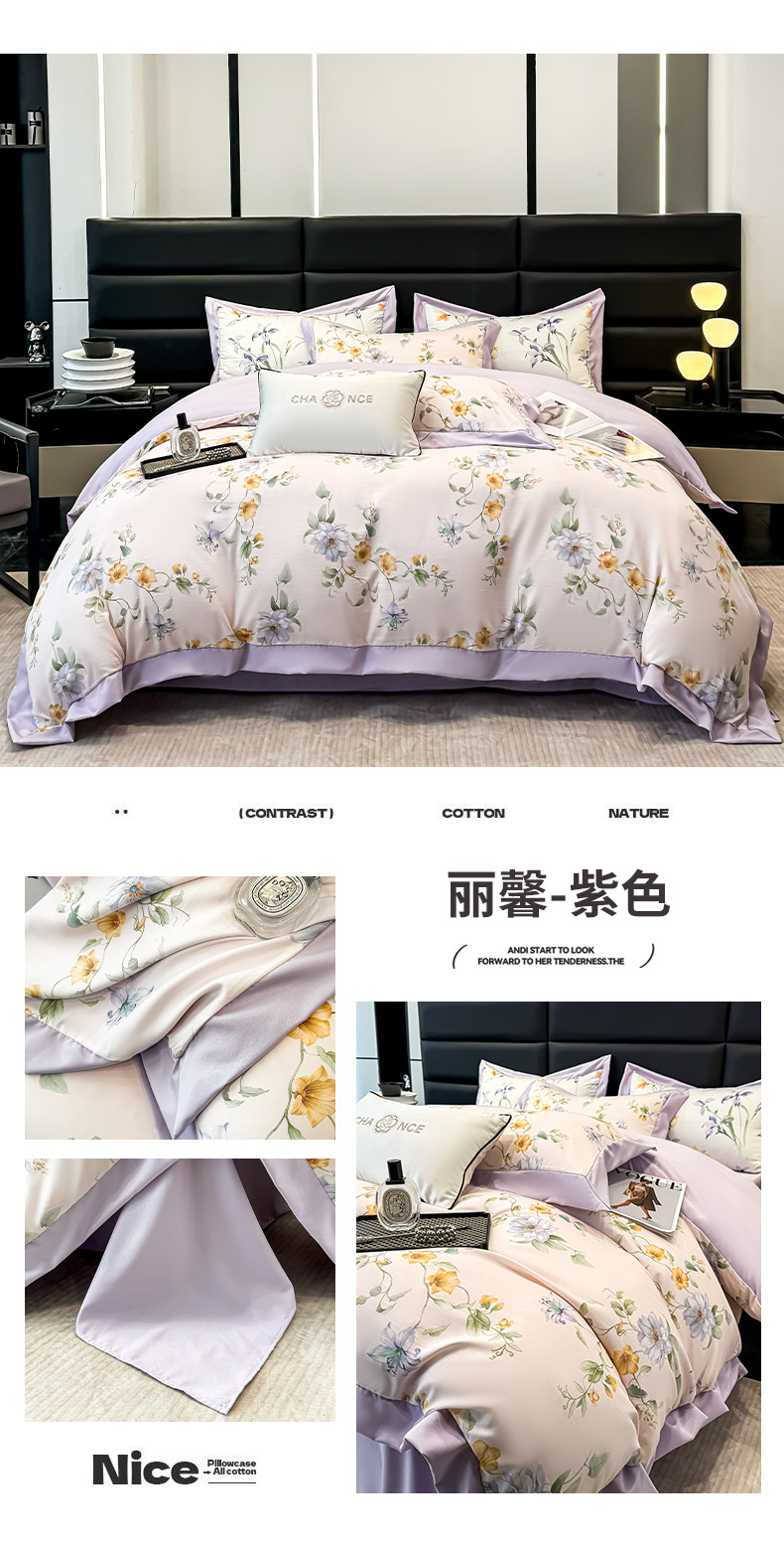 当前位置: 91家纺网 > 商品网购 > 床品套件 > 四件套 > 莱赛尔四件套 > 天一阁 2025春夏新款莱赛尔天丝印花四件套 礼盒装【可配床盖款】 丽馨-紫色