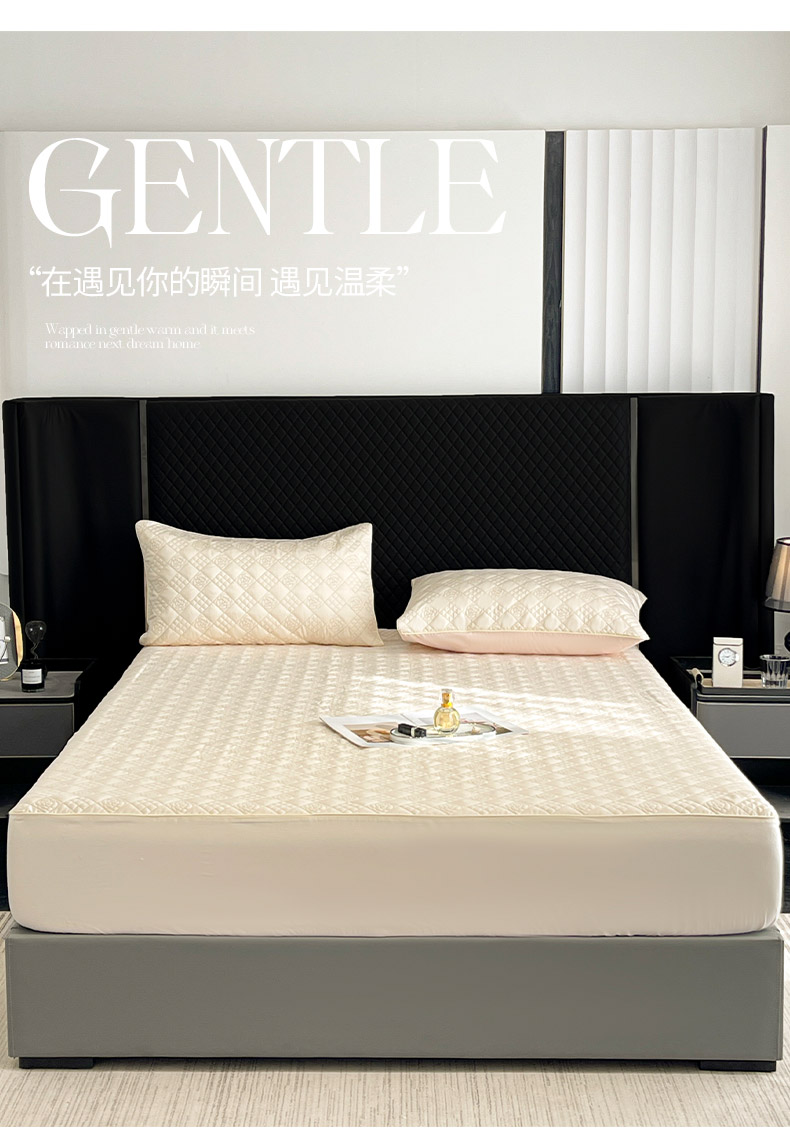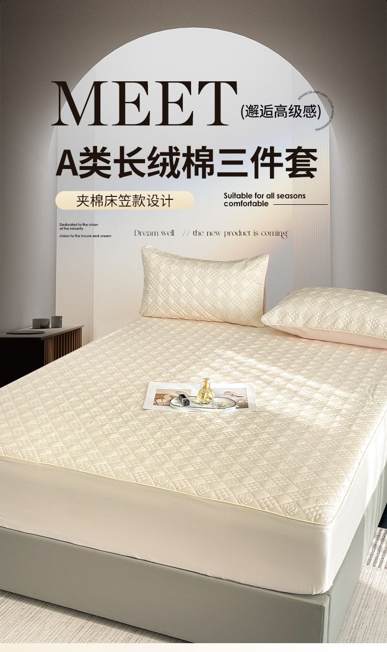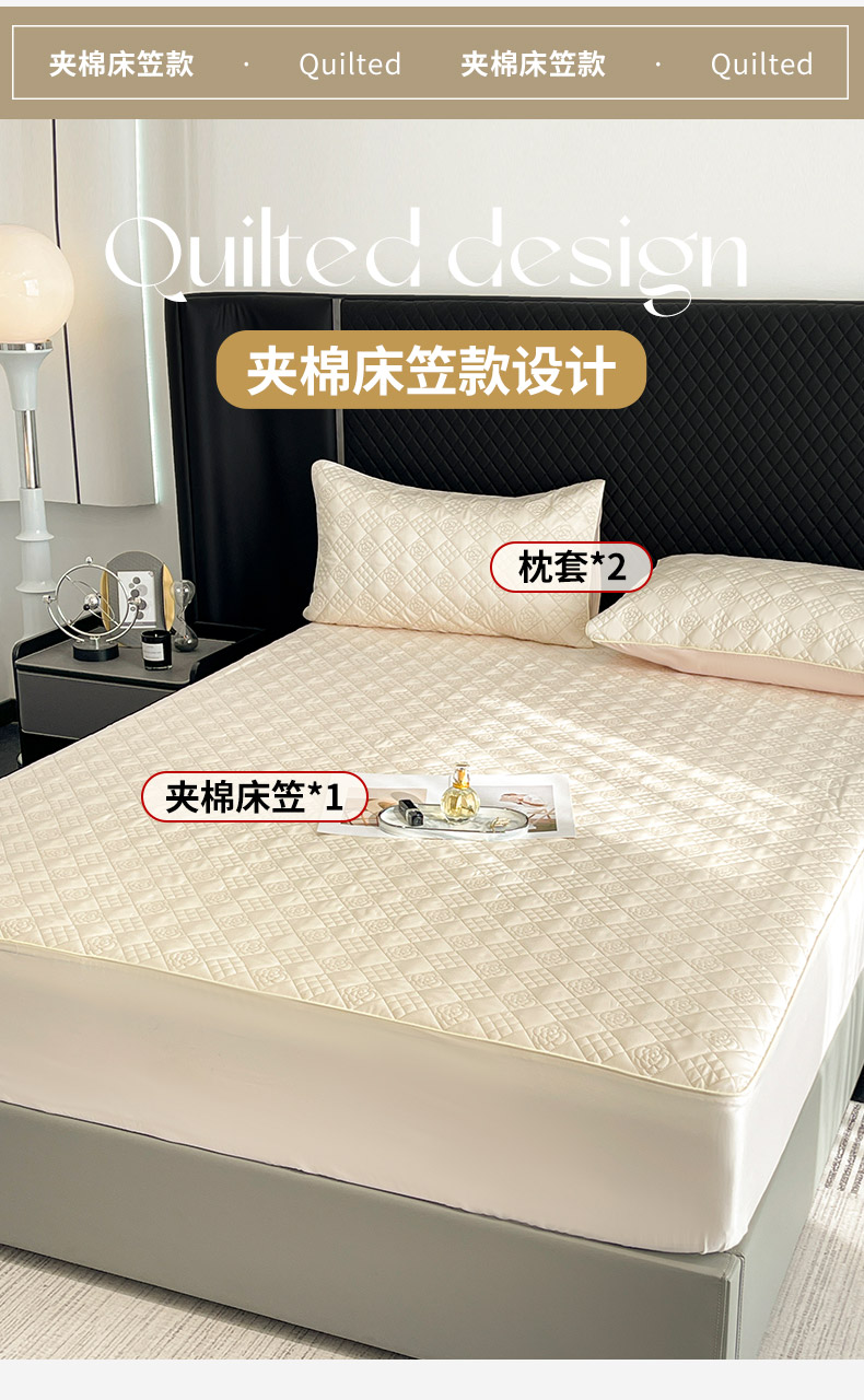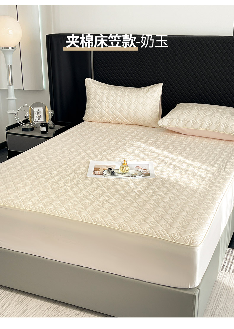 商品名称:2025新款A类母婴级长绒棉夹棉床笠三件套纯棉全棉加厚席梦思床罩床套四季款保护罩 奶玉