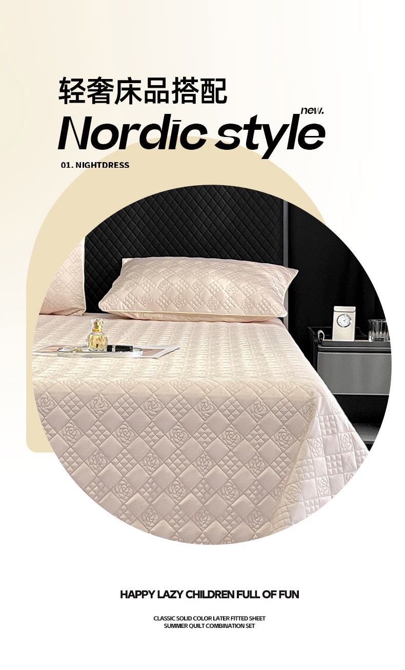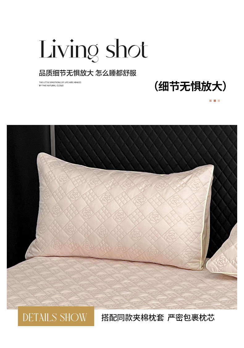 商品名称:2025新款轻奢风A类长绒棉夹棉床盖床笠三件套纯色绗绣四季高级感纯色全棉纯棉床上用品 颜粉