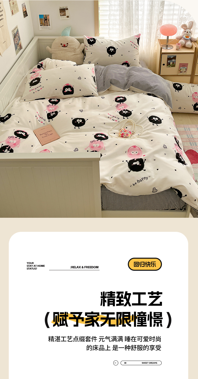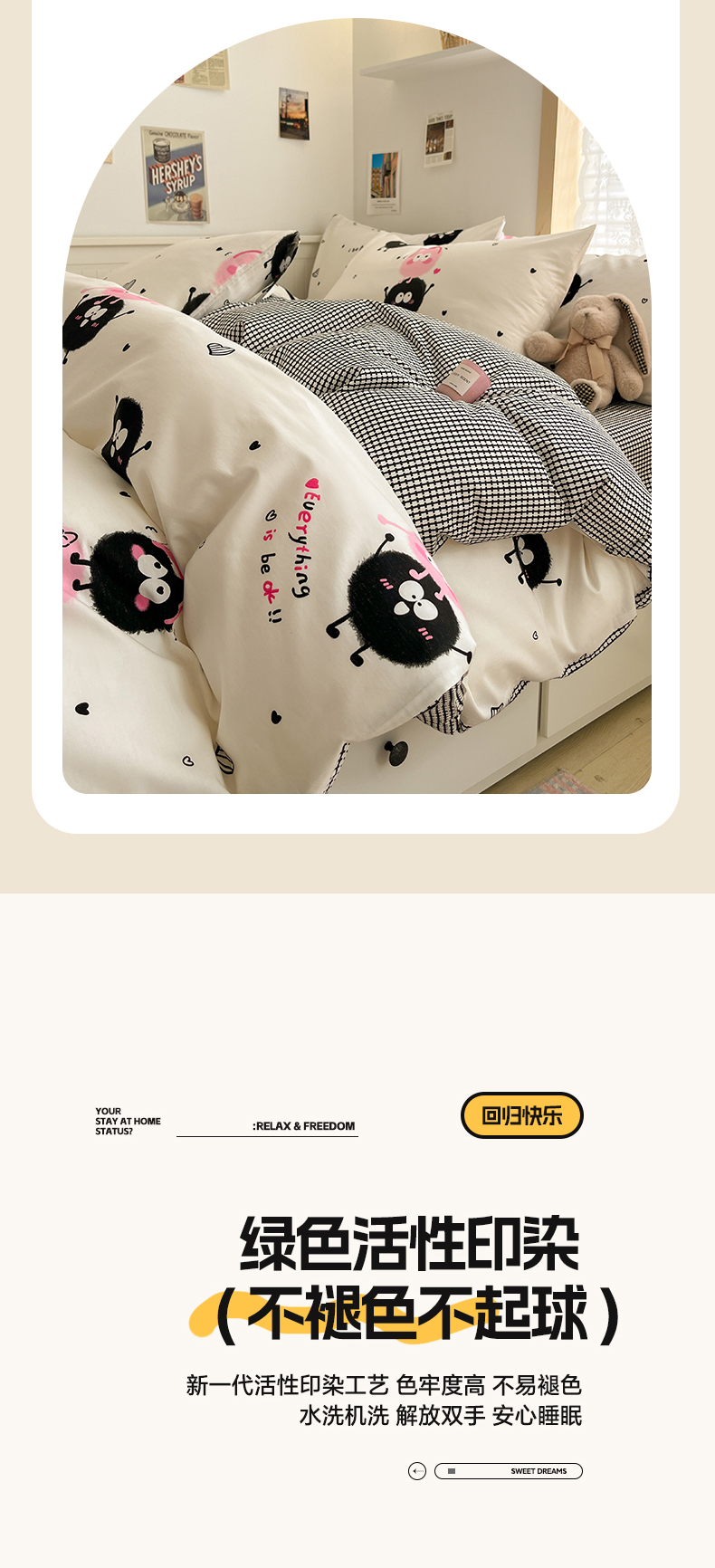 商品名称:寻米 2025新款13070全棉纯棉印花单被套 开心煤球
