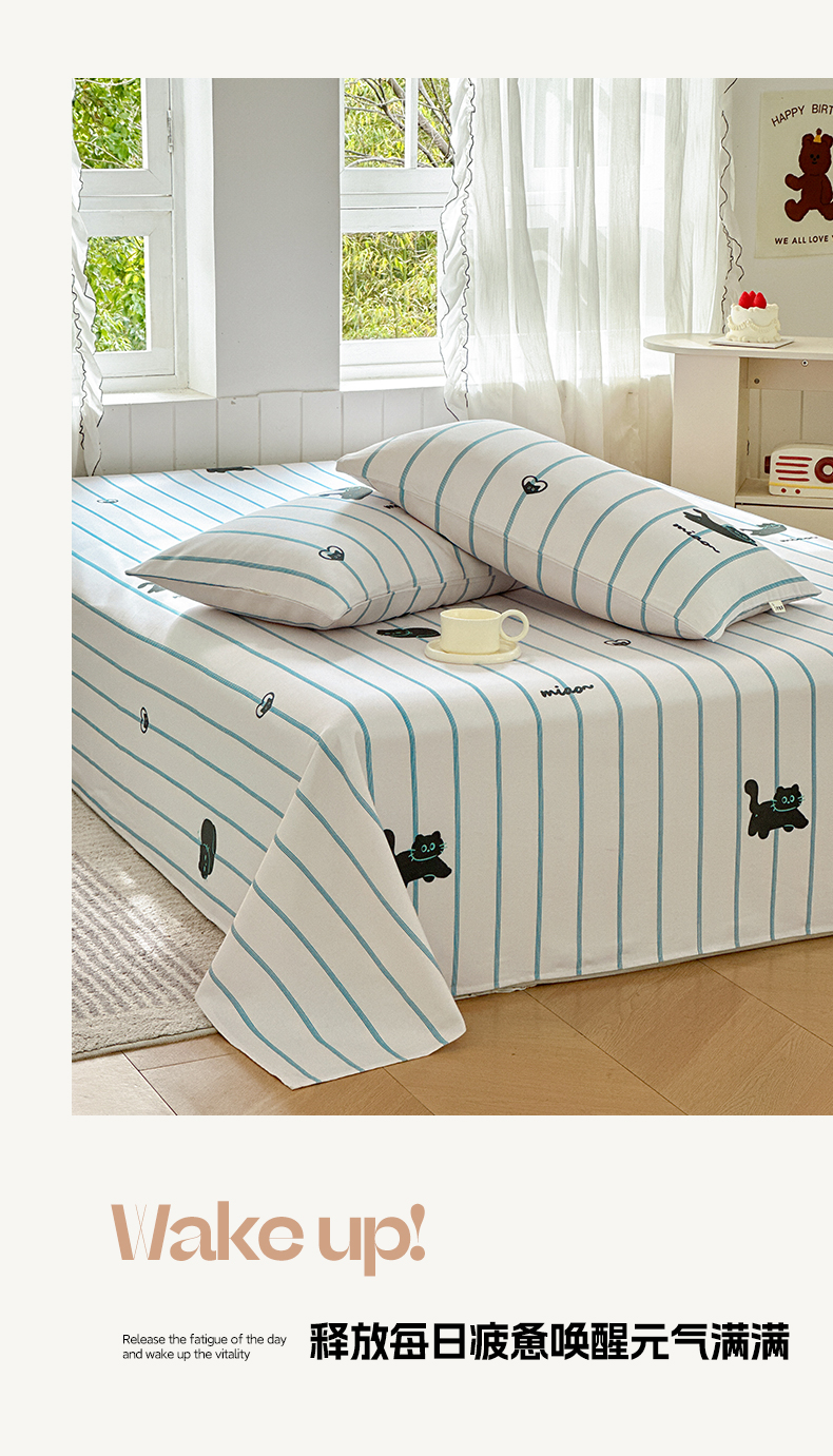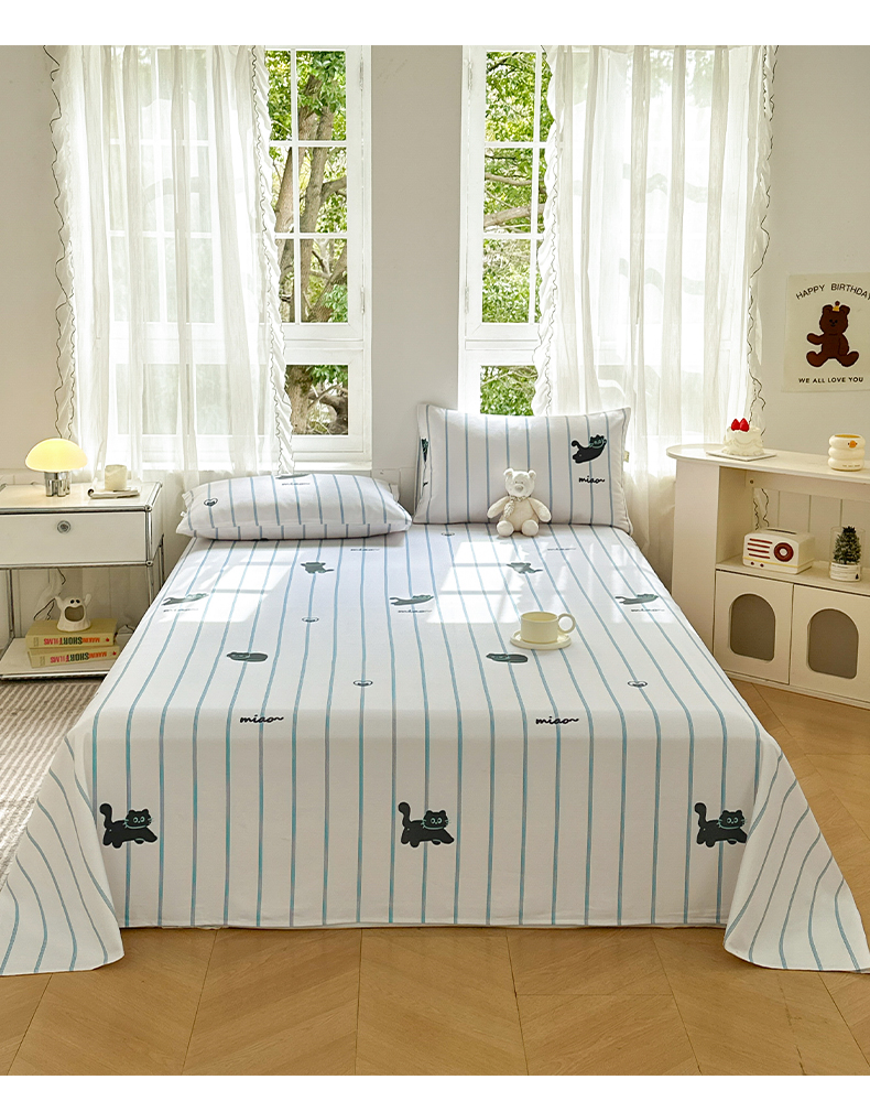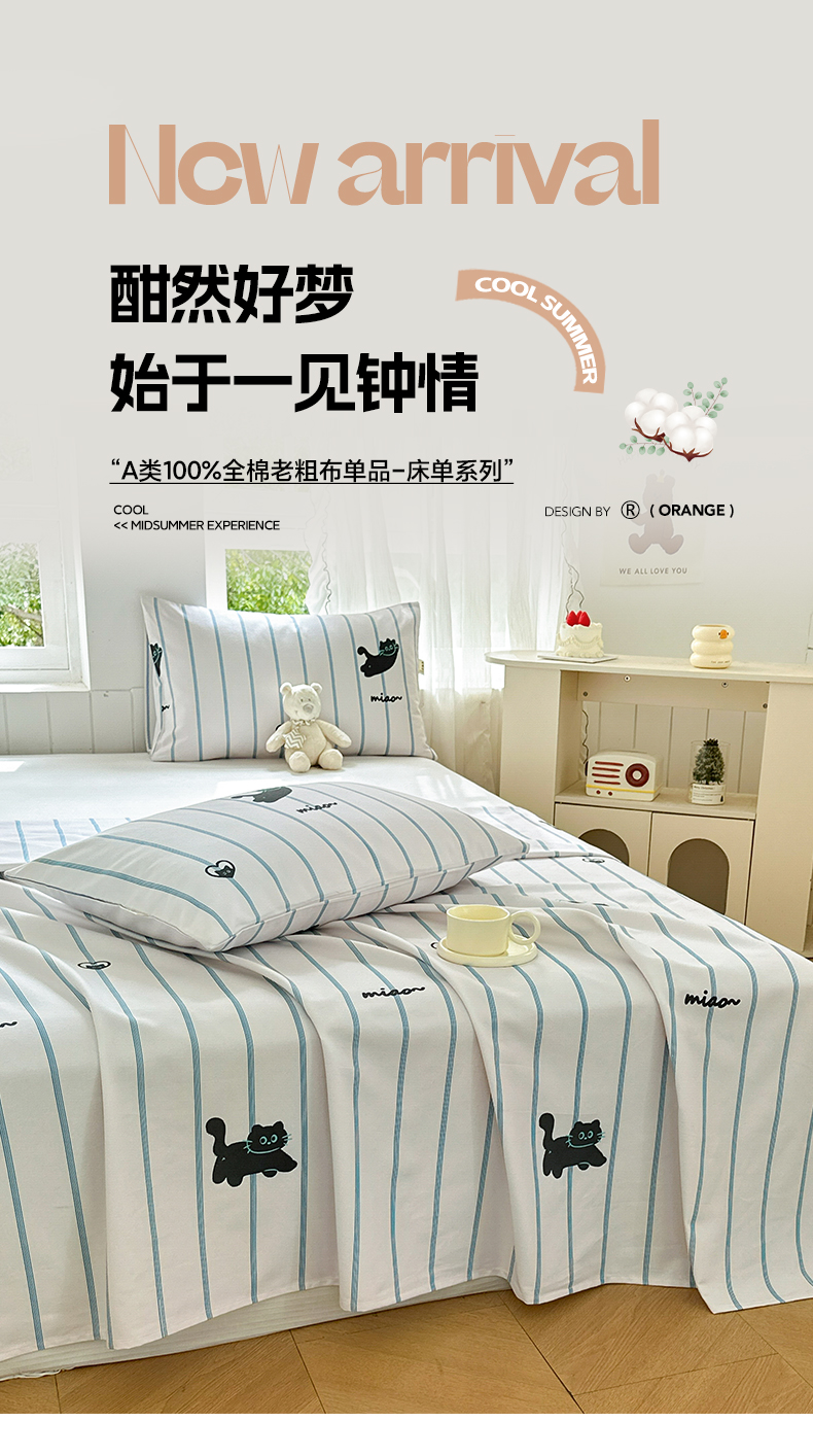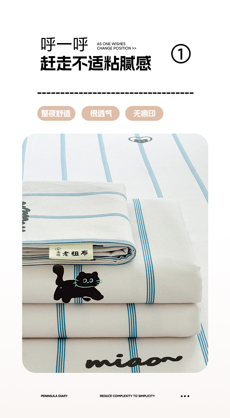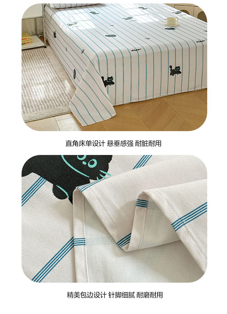 莱登卡奴 新款A类100%全棉老粗布单品系列-床单 喵喵时光