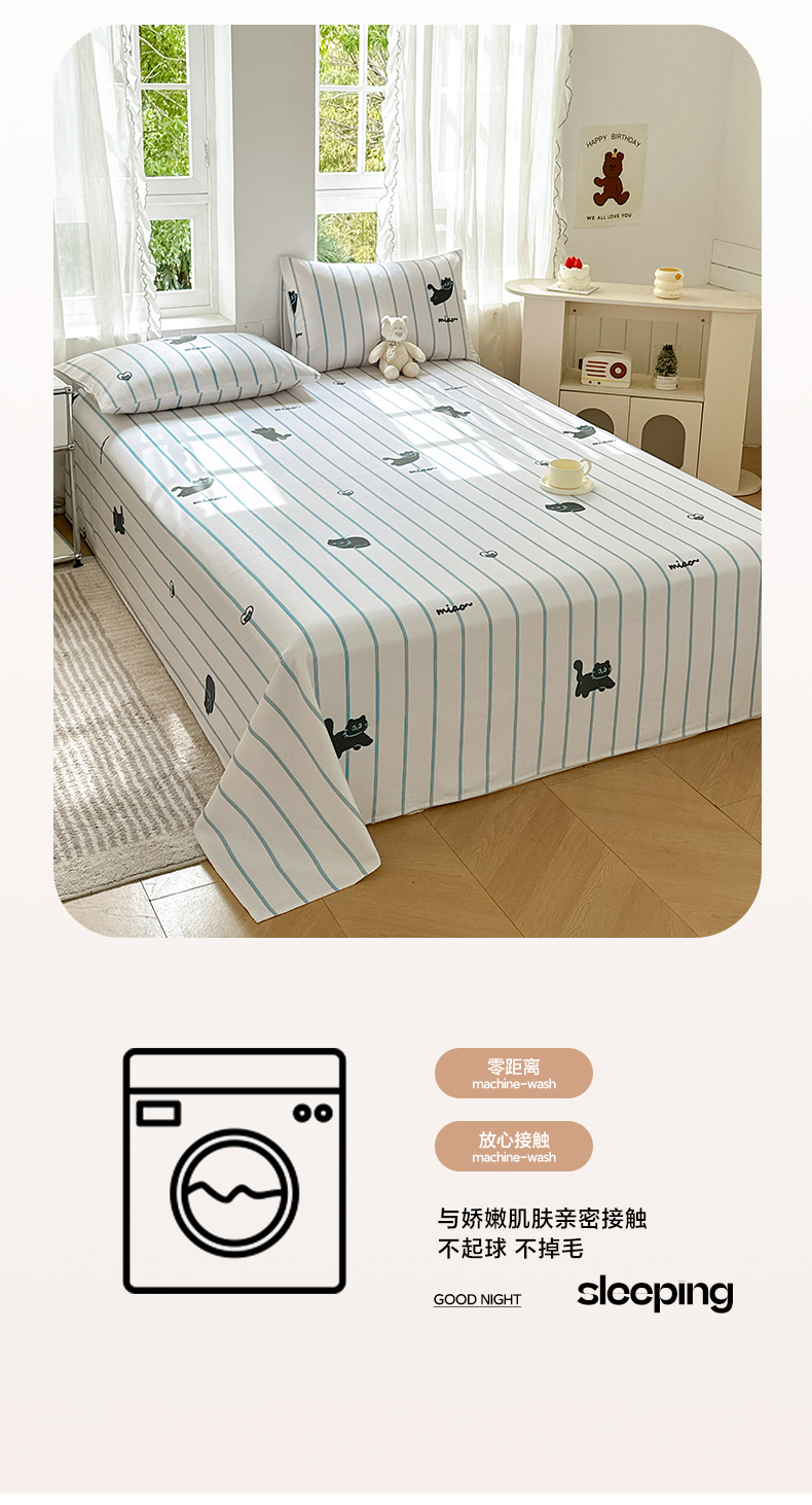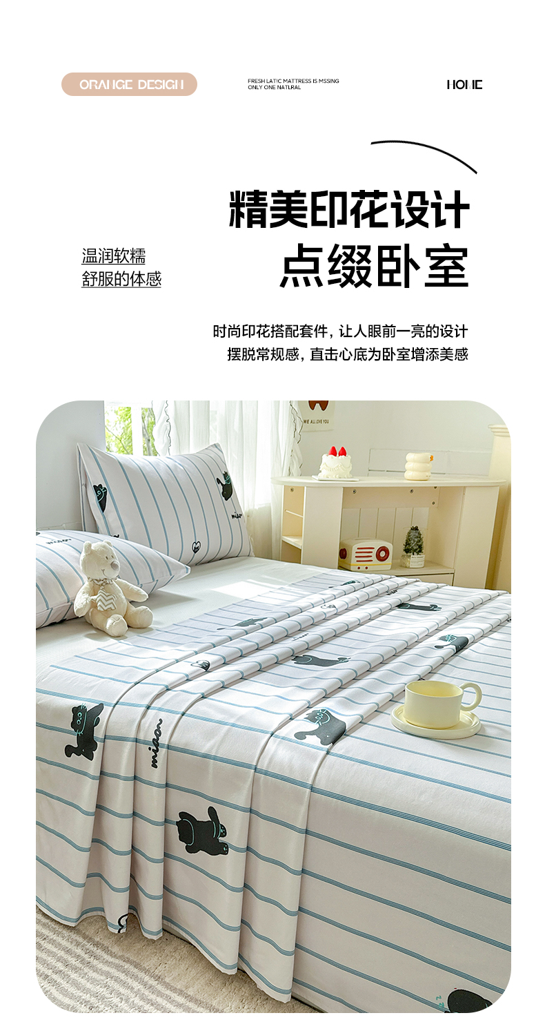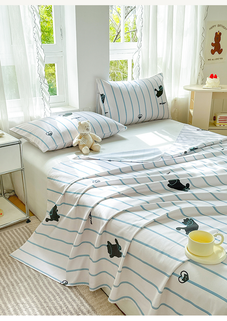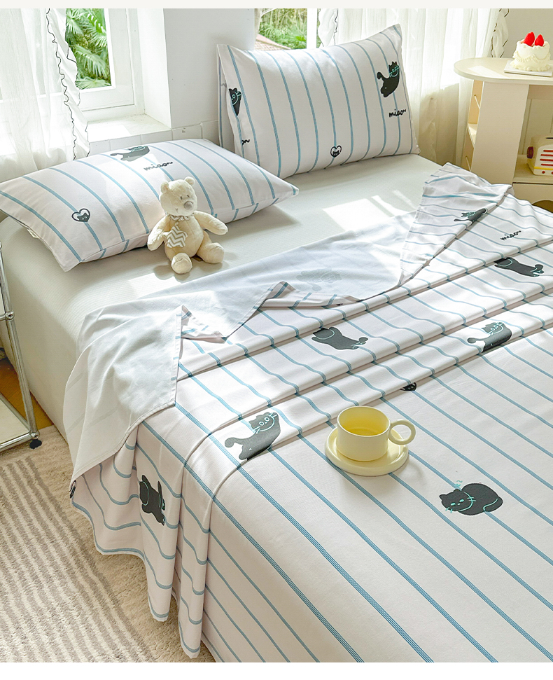 莱登卡奴 新款A类100%全棉老粗布单品系列-床单 喵喵时光