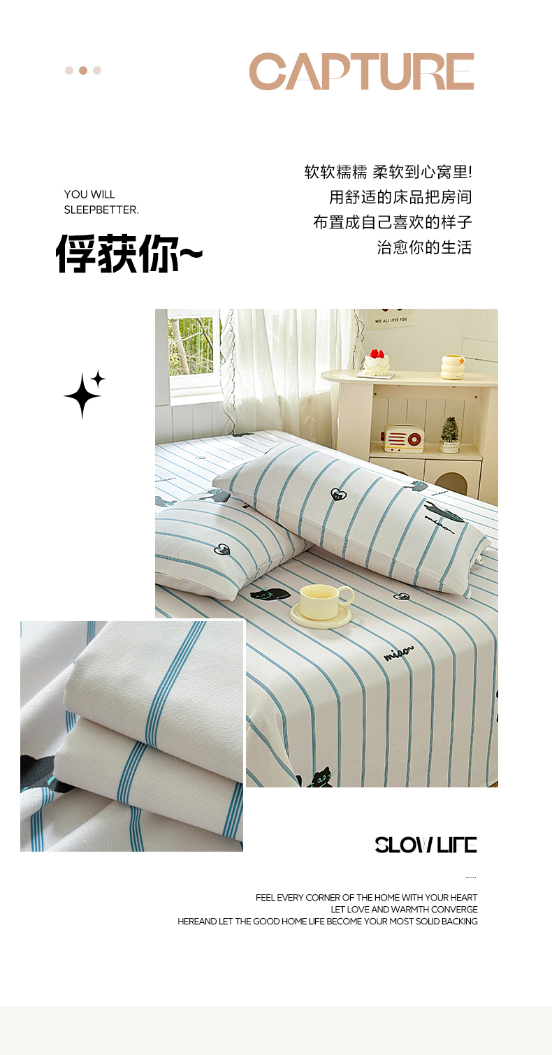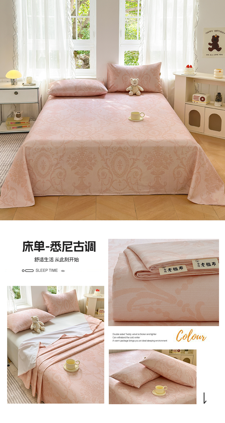 • 91家纺网 家纺一手货源 找家纺 莱登卡奴 新款A类100%全棉老粗布单品系列-床单 喵喵时光