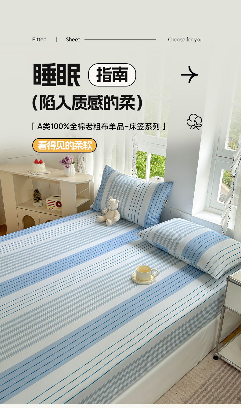 莱登卡奴 新款A类100%全棉老粗布单品系列 蓝宁小调
