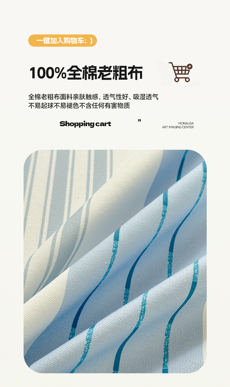 • 91家纺网 家纺一手货源 找家纺 莱登卡奴 新款A类100%全棉老粗布单品系列 蓝宁小调